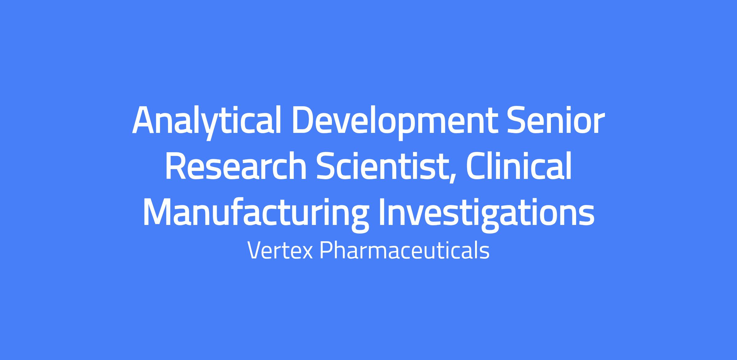 Analytical Development Senior Research Scientist, Clinical Manufacturing Investigations