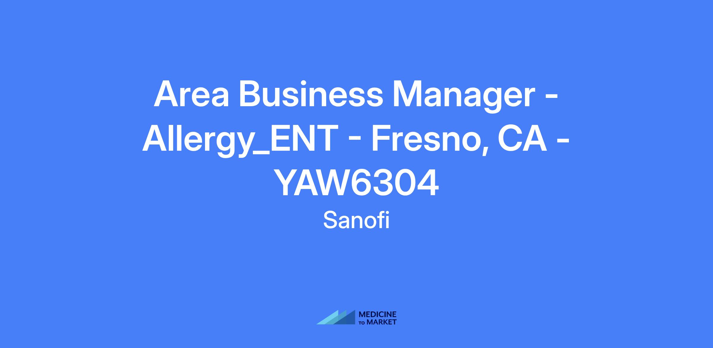 Area Business Manager - Allergy_ENT in Fresno, CA responsible for engaging Allergists and ENTs, presenting clinically focused selling messages to create and grow revenue and to deliver product goals related to asthma, CRSwNP, atopic dermatitis, CSU and EOE indications.