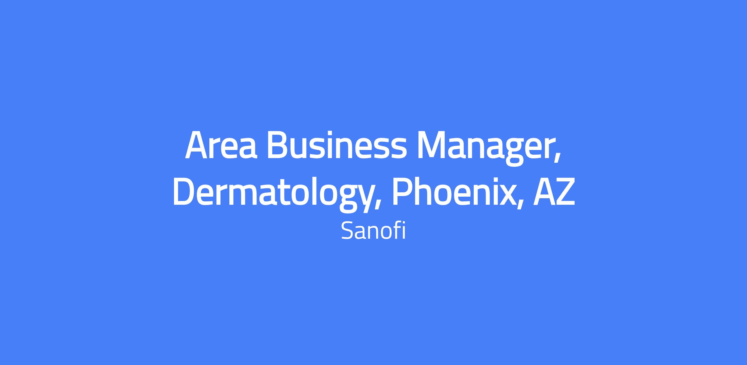 Location: Phoenix, AZ. The Area Business Manager (ABM) engages Dermatology/Immunology customers within an assigned geography and delivers clinically focused selling messages to grow revenue and achieve product goals for atopic dermatitis and related dermatologic indications. The role requires initiative, drive, independence, and ownership to meet and exceed sales targets, while complying with all policies governing promotion of pharmaceutical products.