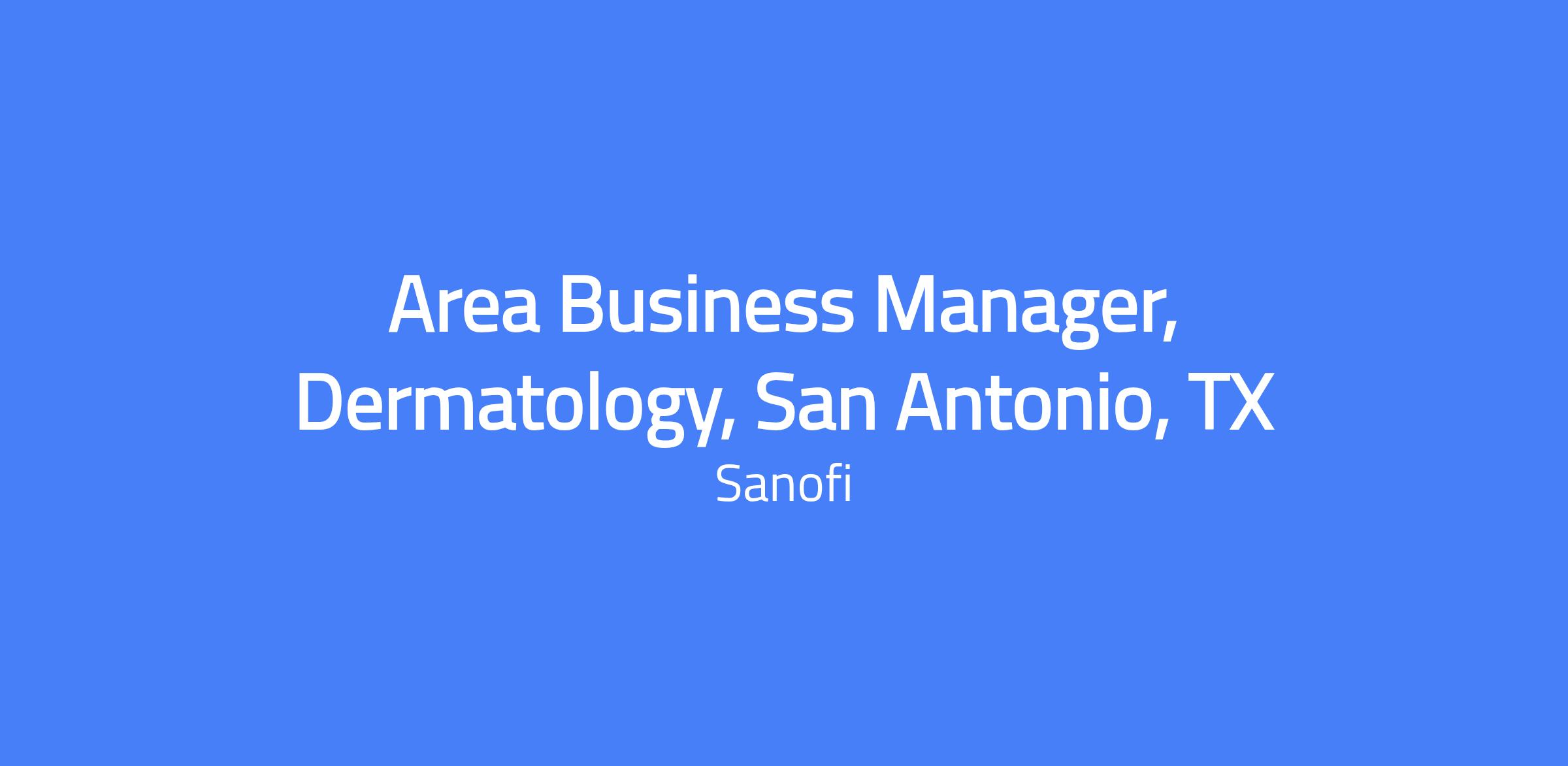 Area Business Manager, Dermatology in San Antonio, TX. Engages Dermatology and other key customers within an assigned geography, delivering clinically focused selling messages to drive revenue and achieve product goals for atopic dermatitis and related dermatologic indications. Works with cross-functional teams and adheres to company policies to ensure compliant promotion of pharmaceutical products.