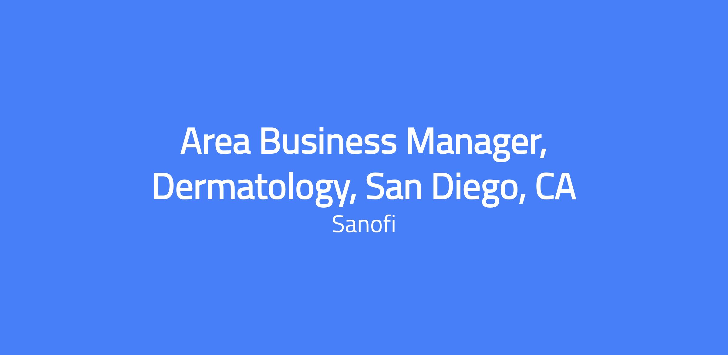 Location: San Diego, CA. As Area Business Manager - Dermatology, within the Specialty Care Team, you will engage Dermatology and other key customers within an assigned geography, delivering clinically focused selling messages to create and grow revenue and to consistently deliver product goals related to Atopic Dermatitis and other dermatologic indications. You will demonstrate initiative, drive, independence, and take ownership for meeting and exceeding individual business goals, while complying with all policies governing the promotion of pharmaceutical/biological products in the US.