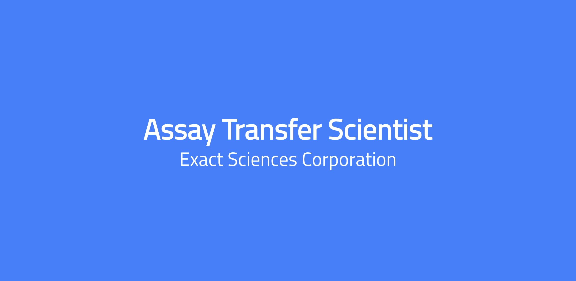 Help us change lives At Exact Sciences, weâre helping change how the world prevents, detects and guides treatment for cancer. We give patients and clinicians the clarity needed to make confident decisions when they matter most. Join our team to find a purpose-driven career, an inclusive culture, and robust benefits to support your life while youâre working to help others. Position Overview The Assay Transfer Scientist role will lead and assist a variety of design and test method transfer activities within Operations. This position is primarily responsible for assisting the transfer and implementation of analytical and functional tests used to characterize and release products in operations. Additional responsibilities include collaboration with other departments to define test method requirements and development of new methods as needed. Essential Duties Include, but are not limited to, the following: Provide design and test method transfer support to Operations by working cross-functionally with the Production, Quality Control, Supply Chain, R&D, Systems Development, and Quality teams. Support test method design and transfer via test method transfer forms/plans, characterization studies, method development reports, and quality specification documents through collaboration, experiment design, study execution, data analysis, and reporting. Lead and assist in training and knowledge transfer of test method development and execution. Strong knowledge base in Molecular Biology, Biochemistry, Biotechnology, Chemistry, or a related field. Demonstrated proficiency in a variety of basic and intermediate laboratory skills and techniques. Program, operate, and troubleshoot complex instrumentation such as microplate readers, real-time and digital polymerase chain reaction (PCR) instruments, next-generation sequencers, and liquid handling automation. Assist in development and characterization of intermediate to complex functional and analytical test methods with general knowledge of their use in operations and QC. Assist characterization of test method variability, design and coordinate execution of Measurement System Analysis (MSA) studies and determine specifications for simple measurement systems. Apply basic statistical techniques: assessing data normality, control charting and data trending, hypothesis testing, assessing variation, basic linear regression and model fitting, DOE, MSA, Multivariate Analysis, and ANOVA. Analyze data to identify trends, assists/leads troubleshooting and root cause investigation efforts with ability to utilize recognized root cause analysis tools. Assist investigations into analytical and functional assays and associated equipment and during the transfer process of methods into operations. Clearly and accurately generate experimental protocols, draft work instruction procedures, test methods, and summarize development activities through technical summary reports. Support Process Validation and support Test Method Validation readiness and execution. Provides support and review in generating Validation documentation. Write new and edit existing Quality System documents (e.g. work instructions, standard operating procedures). Identify Continuous Improvement opportunities for the Quality System. Responsible for generating/driving corrective actions/action plans for more complex changes. Experience using Electronic Quality Management System (EQMS) software (Agile preferred). Regularly coordinate activities or lead smaller sub projects. Generate project plans, identify risk, and communicate status to stakeholders. Lead team execution toward project milestones according to project timelines and apply recognized project management and scheduling tools. Determine timelines and consistently hit deliverables and commitments. Exercise ability to proactively plan with the ability to navigate through ambiguity and thrive in a fast-paced, frequently changing, and evolving environment. Understanding of continuous improvement methodologies/principles. Function independently with limited guidance from supervisor as well as part of a team. Exercise excellent oral and written communication, interpersonal, and presentation skills with strong attention to detail. Uphold company mission and values through accountability, innovation, integrity, quality, and teamwork. Support and comply with the companyâs Quality Management System policies and procedures. Maintain regular and reliable attendance. Ability to act with an inclusion mindset and model these behaviors for the organization. Ability to work nights and/or weekends, as needed. Ability and means to travel between local Exact Sciences location(s). Ability to travel 5% of working time away from work location, may include overnight/weekend travel. Minimum Qualifications Bachelorâs degree in life sciences or field related to the essential duties of the job. 4+ years of experience in the life sciences industry. Masterâs or Doctoral degrees may be considered in lieu of 2 years of experience. Proficient in MS Office Suite (Word, Excel, Outlook, PowerPoint). Demonstrated ability to perform the essential duties of the position with or without accommodation. Authorization to work in the United States without sponsorship. Preferred Qualifications Proficiency with statistical analysis software and/or programing (e.g. JMP, R). Experience in Quality Control test method development, either analytical or functional Advanced Degree in Biology, Chemistry, or similar discipline (MS). Experience working within an FDA 21 CFR 820, ISO 13485, ISO12207, and/or cGMP structured environment. Experience developing automated liquid handling workflows on Hamilton robotic platforms. Experience with in-vitro diagnostic product development, design transfer, manufacturing, or product support. #LI-AT1 Salary Range: $76,000.00 - $125,000.00 The annual base salary shown is for this position located in US - WI - Madison on a full-time basis. In addition, this position