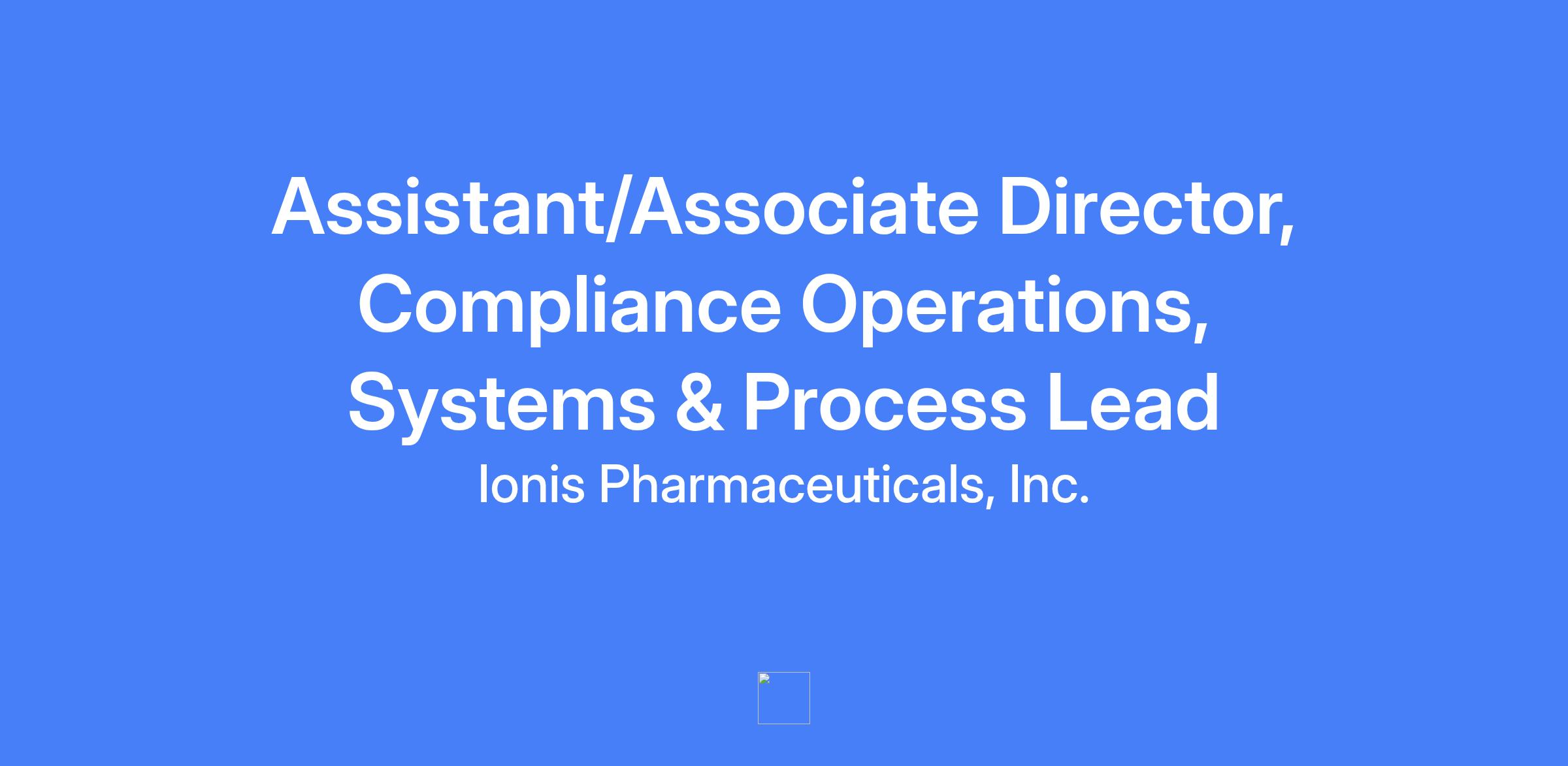 The Assistant / Associate Director Compliance Operations โ Systems and Process Lead, reports to the Head of Compliance Operations and is responsible for designing, implementing, and managing technology and process solutions supporting Ionisโs healthcare fraud and abuse compliance operations. Key focus areas include HCP Engagements, Transparency Reporting, Risk Assessment, and Monitoring. This role ensures compliance systems and processes are efficient, scalable, and aligned with regulatory requirements and company policies.