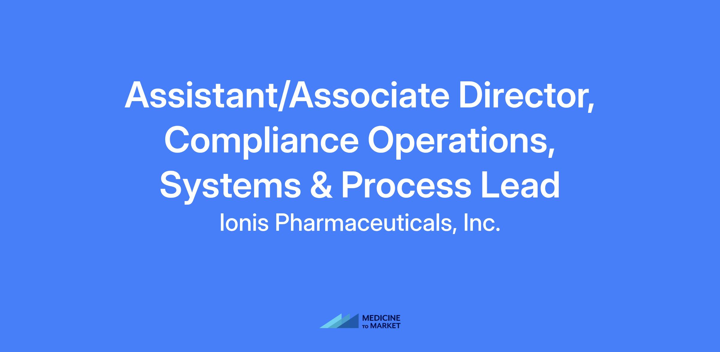 The Assistant / Associate Director Compliance Operations – Systems and Process Lead, reports to the Head of Compliance Operations and is responsible for designing, implementing, and managing technology and process solutions supporting Ionis’s healthcare fraud and abuse compliance operations. Key focus areas include HCP Engagements, Transparency Reporting, Risk Assessment, and Monitoring. This role ensures compliance systems and processes are efficient, scalable, and aligned with regulatory requirements and company policies.