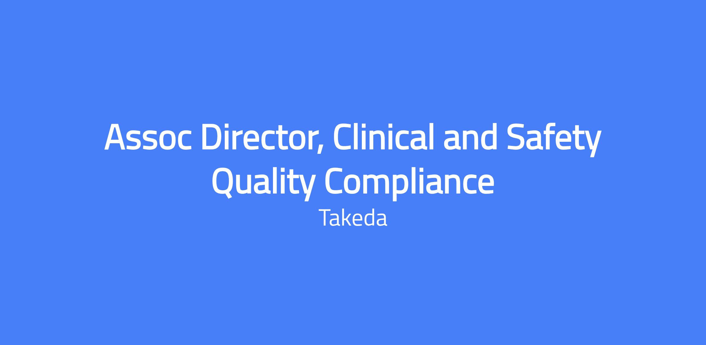 The Associate Director, Clinical and Safety Quality Compliance is responsible for ensuring the quality of processes and product outputs. This role involves defining and specifying activities, processes, and standards to meet quality requirements, auditing and monitoring processes, and ensuring compliance with corporate and regulatory standards. By maintaining high-quality standards, this role supports Takeda's mission to provide better health and a brighter future.