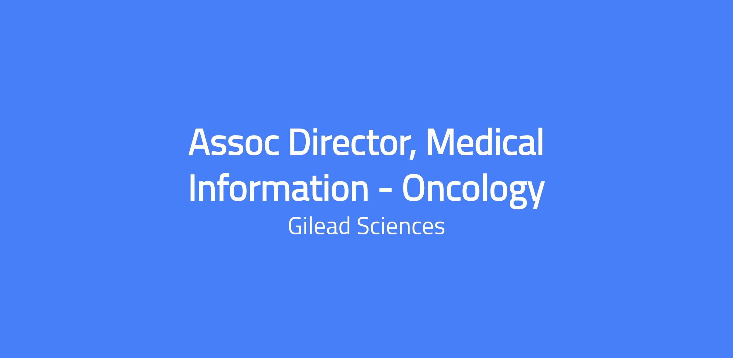 Assoc Director, Medical Information - Oncology at Gilead (Foster City, CA) leads medical information activities for oncology, ensuring scientific accuracy and regulatory compliance of MI content, collaborates with cross-functional teams to address complex requests, and drives global MI initiatives to improve patient care.