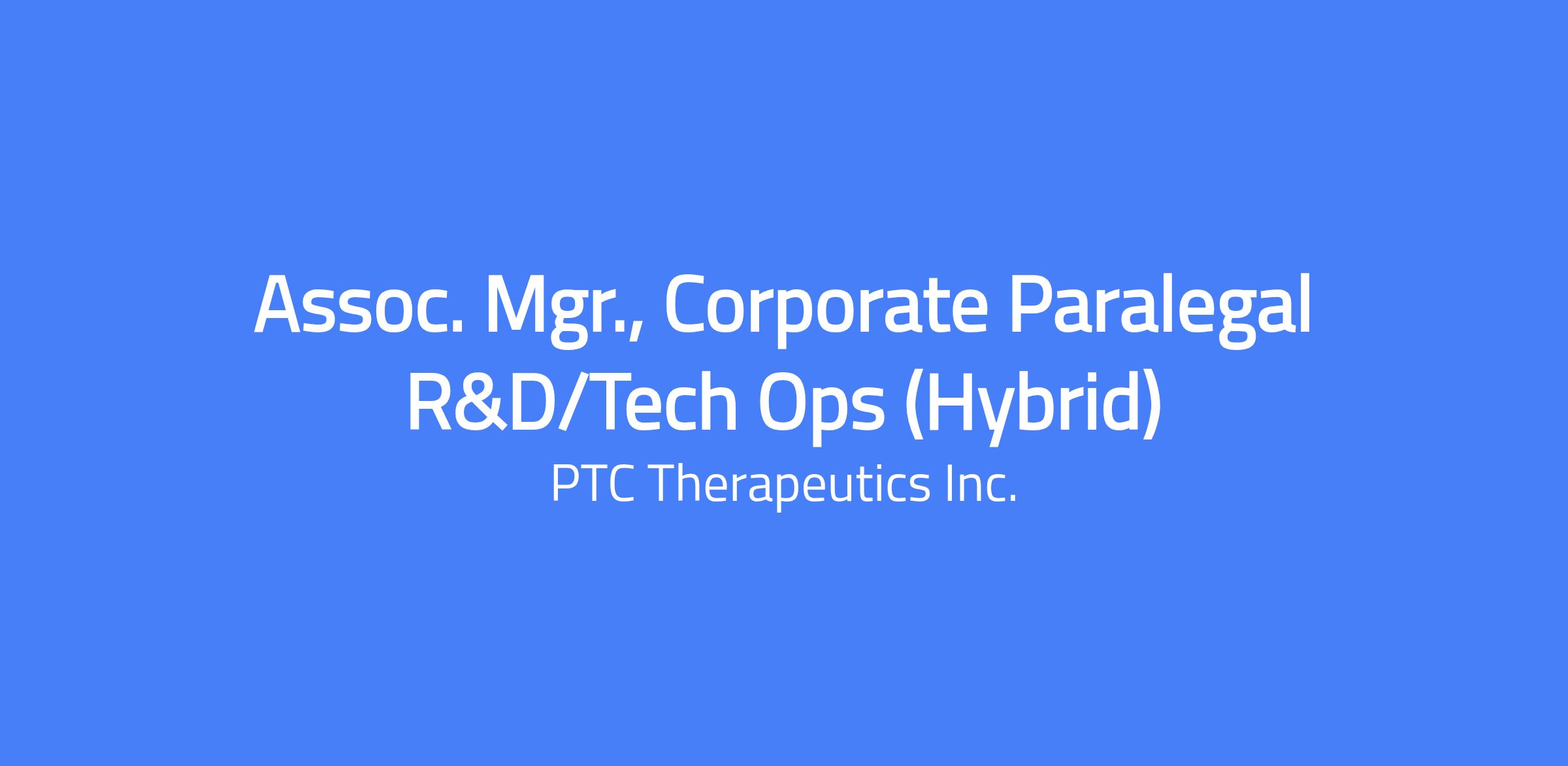 PTC Therapeutics is a global commercial biopharmaceutical company. For over 25 years our team has been deeply committed to a unified purpose: Extending lifeâs moments for children and adults living with a rare disease. At PTC, we cultivate an inclusive culture where everyone feels valued, respected, and empowered. We welcome candidates from all backgrounds to join our team, fostering a strong sense of belonging. Visit our website to learn more about our company and culture! Site: www.ptcbio.com Job Description Summary: The Paralegal, R&D/Tech Ops will support the Legal Department by reviewing, drafting, and negotiating various research-related agreements, including but not limited to Clinical Trial Agreements (CTAs), Master Service Agreements (MSAs), Confidentiality Agreements (NDAs), and Material Transfer Agreements (MTAs). This role will also provide legal and administrative support for the Legal Teamâs contracting activities, including managing contract templates, generating reports and maintaining efficient processes and policies to ensure smooth and effective operations. This position requires: the ability to work effectively with various functions and teams within the company and exceptional judgment, organizational, and analytical skills. This role requires a candidate who has a demonstrated ability to multitask, is detail-oriented, is able to prioritize and reprioritize as needed to meet deadlines and is a team-focused collaborator. Job Description: Responsibilities: Contract Review & Drafting: Draft, review, and negotiate routine R&D, clinical trial, Tech Ops (including formulation, packaging, manufacturing, and related supply chain/vendor) and commercial agreements under the supervision of attorneys. Deviation Identification: Identify, flag, and propose revisions for non-standard terms, risks, or deviations from company templates. Contract Lifecycle Management (CLM): Manage the end-to-end contract process, including intake, legal review, routing for internal approvals, signature, and final execution. Legal Collaboration: Collaborate with R&D and Tech Ops business stakeholders, procurement, and finance to facilitate timely contract execution. Compliance & Risk Management: Ensure compliance with FDA and EMA regulations and data privacy laws (e.g., GDPR/HIPAA) relevant to research activities. System Maintenance: Maintain accurate records, data, and metadata within the Contract Lifecycle Management (CLM) system and shared drives. Database Reporting: Generate regular reports on contract status, renewals, and expiration dates. Perform other tasks and assignments as needed and specified by management. Qualifications: Bachelorâs degree and/or paralegal certificate required. Minimum 5 years of experience as a paralegal in a corporate legal department or law firm, with a focus on contracts. Strong contract drafting and redlining skills. Demonstrated ability to manage highly sensitive information. Proven ability to work as part of a team and independently/with limited direct supervision in a fast-paced, matrixed, team environment. Excellent planning, organization and time-management including the ability to adapt to changing priorities and deadlines. Demonstrated commitment to quality and attention to detail. Excellent written and oral communication skills. Proficiency with Microsoft Office (Word, Excel, Outlook). Experience with CLM systems. Analytical thinker with excellent problem-solving skills and the ability to adapt to changing priorities and deadlines. PTC Legal Mission Statement The PTC Legal Team strives to be a valued business partner accelerating innovation and access to our medicines for patients in need, while balancing opportunity and risk in the conduct of our work. In every matter we handle, we strive to: Provide business-focused advice, solutions and support; Demonstrate a thorough understanding of the business; Anticipate challenges and remove obstacles; Communicate promptly, clearly and effectively; Navigate the legal landscape, identifying risks and formulating alternatives where possible; and Exemplify the PTC Expectations. Special knowledge or skills and/or licenses or certificates preferred. Direct experience with R&D, clinical trials, or intellectual property agreements is highly preferred. Paralegal certificate is a plus. Travel requirements: May require up to 5% of domestic travel Hybrid position with at least two days on site per week. Expected Base Salary Range: $99,900 â $115,000. The base salary offered will be contingent on assessment of candidate education level, background, and experience relative to the requirements of the position they are being considered for, as well as review of internal equity. In addition to base salary, PTC employees are also eligible for short- and long-term incentives. All eligible employees may also enroll in PTCâs medical, dental, vision, and retirement savings plans. EEO Statement: PTC Therapeutics is an equal opportunity employer. We welcome applications from all individuals, regardless of race, color, national origin, gender, age, physical characteristics, social origin, disability, religion, family status, pregnancy, sexual orientation, gender identity, gender expression, disability, veteran status or any unlawful criterion under applicable law. We are committed to treating all applicants fairly and avoiding discrimination. Click here to return to the careers page About Us PTC Therapeutics is a global biopharmaceutical company dedicated to the discovery, development and commercialization of clinically differentiated medicines for children and adults living with rare disorders. PTC is advancing a robust and diversified pipeline of transformative medicines as part of its mission to provide access to best-in-class treatments for patients with unmet medical needs. Our strategy is to leverage our scientific expertise and global commercial infrastructure to optimize value for patients and other stakeholders. To learn more a
