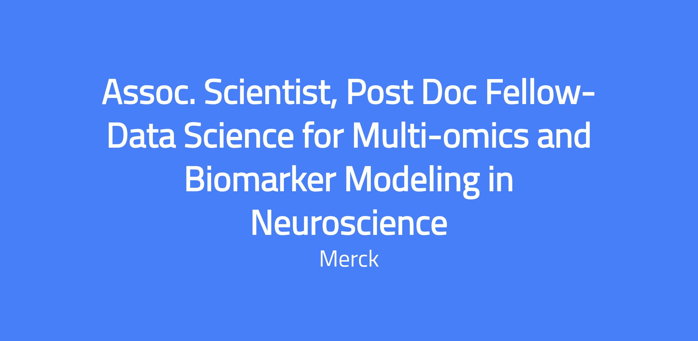 Assoc. Scientist, Post Doc Fellow - Data Science for Multi-omics and Biomarker Modeling in Neuroscience. Join the Neuroscience Translational Analytics team within Data, AI & Genome Sciences at our Cambridge site. The role will develop and apply AI/ML methods linking biofluid biomarkers with tissue-based multi-omics to drive precision patient subtyping and predictive modeling in neurodegenerative diseases, with a primary focus on Alzheimer's disease. You will design end-to-end ML pipelines and new algorithms for cross-cohort data ingestion, harmonization, modeling, validation, and delivery of tools for in silico target perturbation and biomarker dynamics prediction—centered on AD biology while ensuring methods generalize to other disease and therapeutic areas. You will work closely with data scientists, computational biologists, and neuroscientists to deliver benchmarked models and reusable codebases that enable patient subtype specific mechanism discovery.