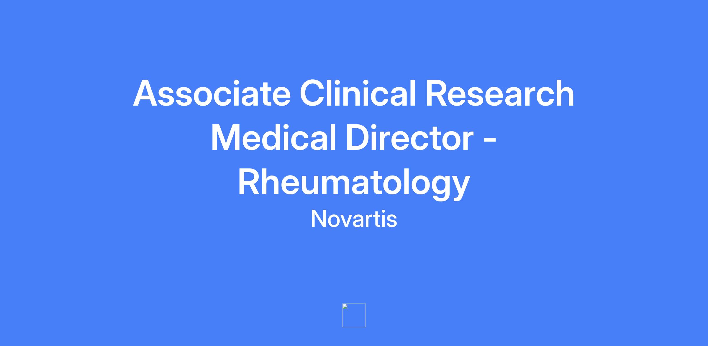 Associate Clinical Research Medical Director - Rheumatology. Accountable for all country clinical/medical aspects associated with Development and prioritized research programs/trials by providing clinical strategic and tactical leadership as the Country Clinical Development representative.