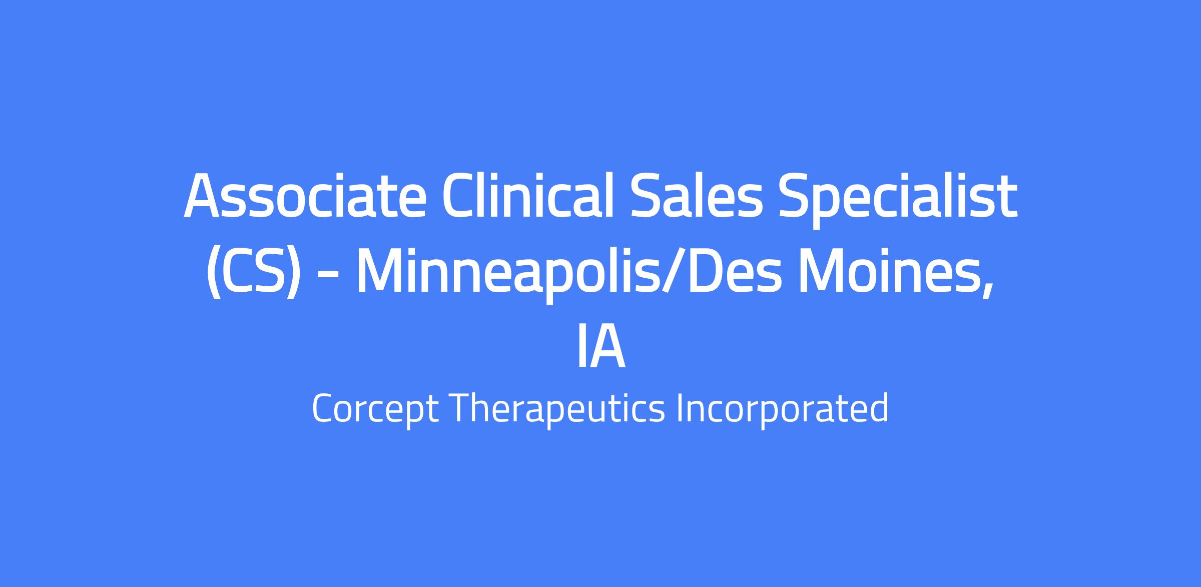 The Associate CS is accountable for implementing the sales strategies for approved products consistent with Corceptβs compliance standards as well as all applicable legal requirements for those key targeted health care providers and hospital systems within an assigned territory.