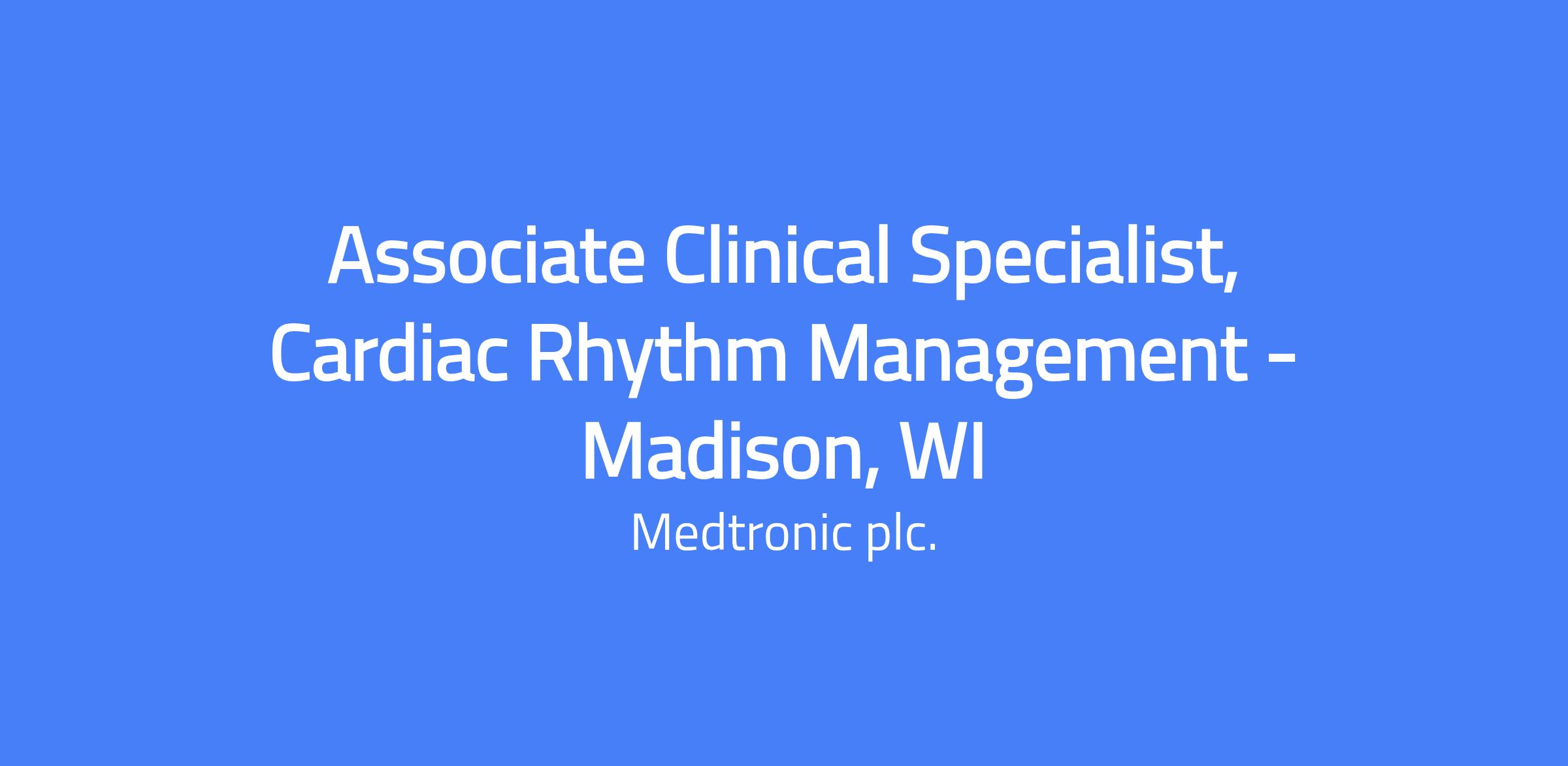 Associate Clinical Specialist, Cardiac Rhythm Management - Madison, WI