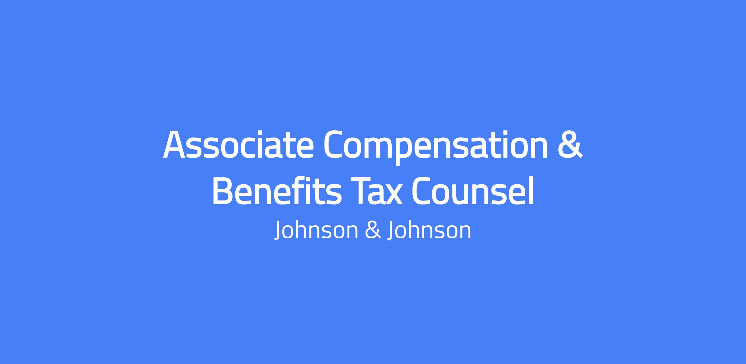 Associate Compensation & Benefits Tax Counsel. This role is located in New Brunswick, New Jersey. Reports to the VP Compensation & Benefits Tax Counsel. The candidate will provide high level technical tax and legal advice to management in the administration of the company’s worldwide employee compensation and benefit plans.