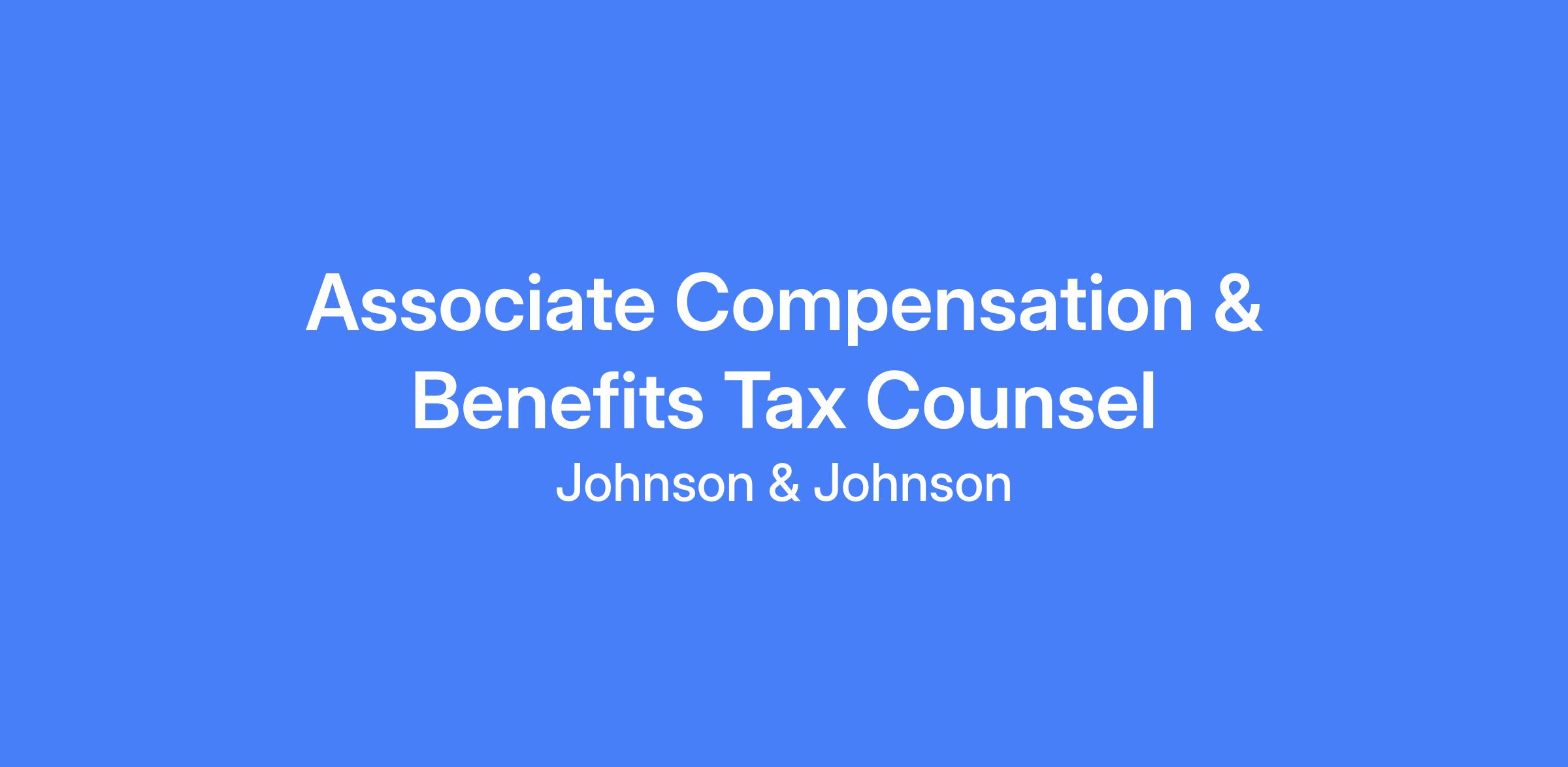 Associate Compensation & Benefits Tax Counsel. This role is located in New Brunswick, New Jersey. Reports to the VP Compensation & Benefits Tax Counsel. The candidate will provide high level technical tax and legal advice to management in the administration of the company’s worldwide employee compensation and benefit plans.