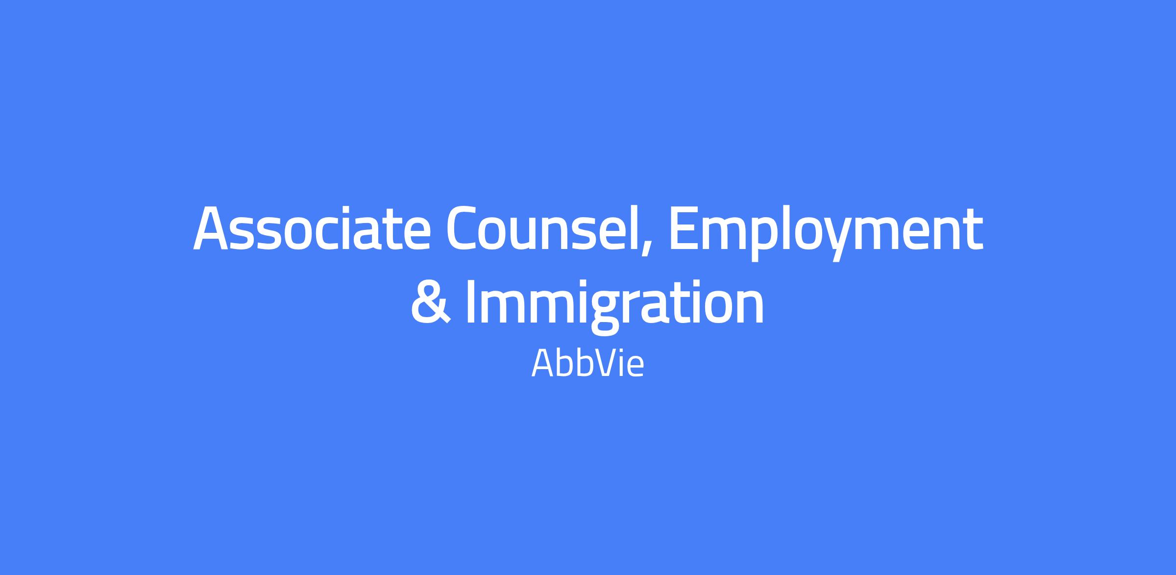 The Employment and Immigration Associate Counsel is responsible for providing U.S. employment and immigration law guidance and support to AbbVie's global pharmaceutical business. In partnership with the employment and immigration law attorneys, this attorney will help manage AbbVie's U.S. immigration program portfolio and provide legal counsel to clients regarding employment and immigration laws. The attorney will interface with internal and outside legal counsel and stakeholders. This position reports to the VP, Employment, Immigration & Labor. This position requires a hybrid work schedule of three days a week at the designated work site in North Chicago, IL.