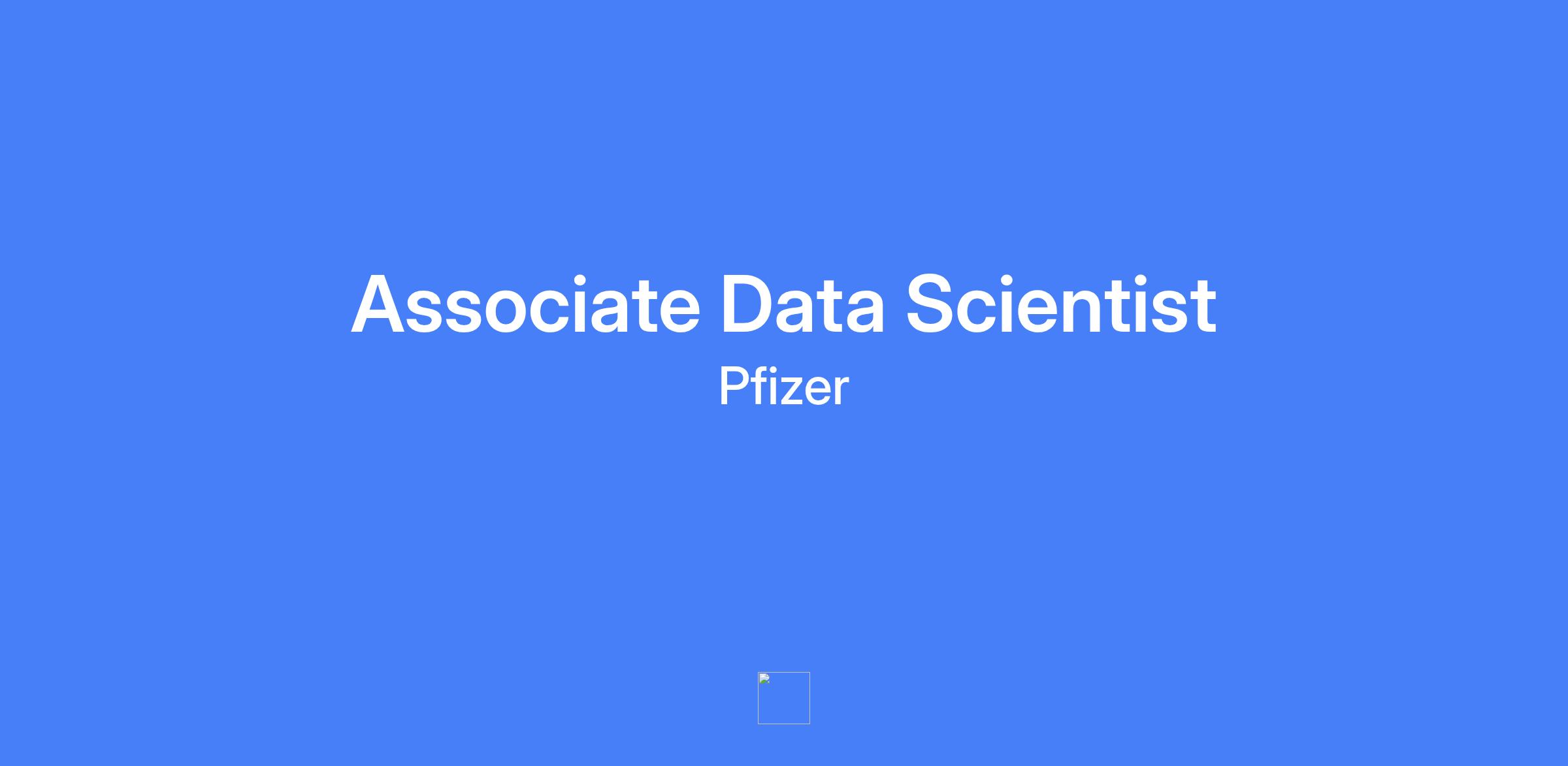 Associate Data Scientist at Pfizer: responsible to assist Data Management staff to leverage data assets to deliver business insights, implement automation and AI methods, collaborating with cross-functional teams to enhance tactical and strategic decision making.