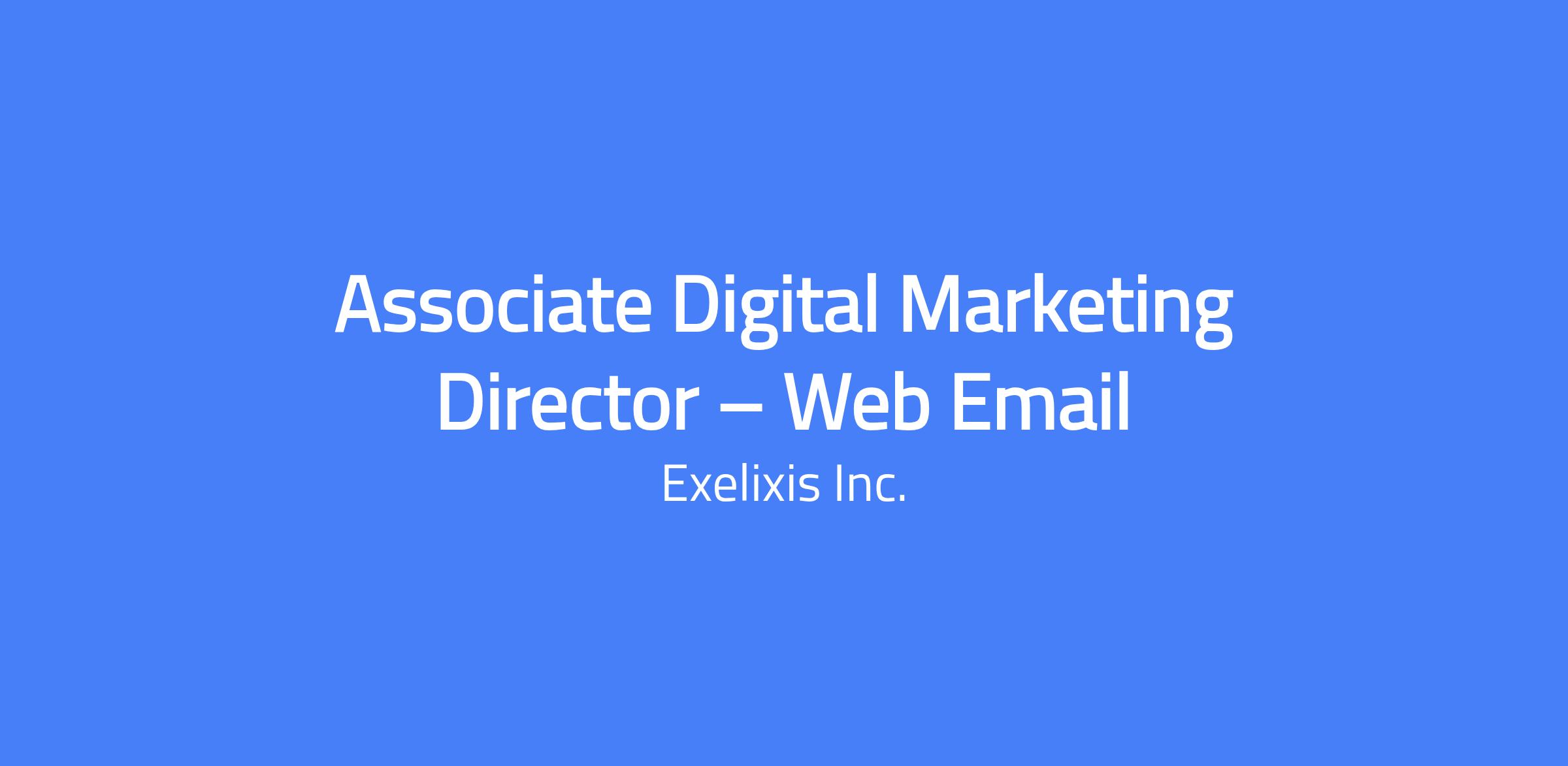SUMMARY/JOB PURPOSE (Basic purpose of the job): The Associate Digital Marketing Director - Web Email will be a key member of the Exelixis digital marketing team. Reporting to Director of Digital Marketing, this position will be responsible for developing and ensuring execution of strategically aligned non personal tactics within web and email channels, partnering closely with teammates focused on media channels. This position involves planning and executing high-quality, timely, and impactful digital customer experiences through key channels, working closely with promo marketing, legal, regulatory, BI, and technology/CSAO partners. This role will also own creative brief development and business requirements gathering for external agencies and internal partners. The ideal candidate has a strong pharma marketing and digital background, with solid understanding of how to use technology and data to achieve brand objectives for a pharmaceutical product with multiple indications. ESSENTIAL DUTIES/RESPONSIBILITIES: Plan and manage promotional website and email tactics that drive increased awareness of CABOMETYX for multiple FDA-approved indications and prepare for the launch of zanzalinitinib (pending FDA approval) Develop and execute brand digital assets on time and on budget, in collaboration with promo marketing, legal, regulatory, BI, and technology/CSAO partners. Translate marketing messaging and strategy into integrated, multi-channel marketing tactics. Manage agency partners to ensure high-quality strategy, content, and execution. Analyze web and email KPIs, conduct A/B testing, and suggest changes to web pages, emails, and subject lines to boost KPI performance Partner with GI + GU Marketing, Sales, Market Access to ensure consistent messaging and customer experience across all digital assets Develop A/B testing plans and content requirements for campaign optimization. Seek opportunities to optimize, test, or advance new capabilities and share learnings across the organization. Ensure successful alignment of digital programs to brand goals and regulatory compliance. Lead the tactic submission for RAMP review and approval, coaching agencies on the process. Manage approval of digital marketing materials with Regulatory, Legal, and Medical Partner with data analytics team and agencies on marketing data warehouse and performance dashboards for reporting NPP data and KPIs across channels Provide expertise on digital trends in the marketplace, and assess new opportunities as they come to see overarching fit to our strategic plan SUPERVISORY RESPONSIBILITIES: No supervisory responsibilities EDUCATION/EXPERIENCE/KNOWLEDGE & SKILLS: Education: Bachelorâs degree in related discipline and 11 years of related experience; or Masterâs degree in related discipline and 9 years of related experience; or Equivalent combination of education and experience. Experience: Experience in product marketing, field sales, or market research/analysis in the pharmaceutical or biotech industries Digital marketing experience across patient and healthcare professional audiences, including online media (SEO/SEM/display), lead gen, web, mobile, social, CRM, non-personal and field promotion channels. Prior marketing experience working in Oncology product launch is preferred Knowledge, Skills and Abilities: Proven work experience as a Digital marketing strategist or Digital marketing manager Extensive knowledge of pharmaceutical/biotech digital marketing; creative and insights-driven, adept at delivering ideas, content, and metrics. Strong organizational and time management skills; proven abilities to effectively manage and complete multiple priorities and projects Exceptional agency management to guide drive projects forward, help identify and remove roadblocks Proven ability to work with cross-functional teams and demonstrate strong collaboration skills Reporting and analytics experience across media and digital channels Hands on experience with online marketing tools and practices Talent for blending innovation with pragmatic execution Ability to draw insight from market research, the sales force, and other sources to optimize messaging, tactical plans, and promotional activities Strong presentation, verbal and written communication skills Understanding of FDA Regulations of pharmaceutical drug promotions and experience with Legal, Medical and Regulatory review processes Some business travel is required Works on problems of diverse scope where analysis of data requires evaluation of identifiable factors. May also work on complex issues where analysis of situations or data requires an in-depth evaluation of variable factors Exercises judgment in selecting methods, techniques and evaluation criteria for obtaining results Networks with key contacts outside own area of expertise. Work Environment/Physical Demands: Our office is a modern, open-plan space that foster collaborations and creativity. Teams work closely together, sharing ideas and solutions in a supportive atmosphere. We provide all necessary equipment, including dual monitors and ergonomic chairs, to ensure a comfortable workspace. Business travel (~25%) is required. DISCLAIMER The preceding job description has been designed to indicate the general nature and level of work performed by employees within this classification. It is not designed to contain or be interpreted as a comprehensive inventory of all duties, responsibilities and qualifications required of employees assigned to this job. We are an Equal Opportunity Employer and do not discriminate against any employee or applicant for employment because of race, color, sex, age, national origin, religion, sexual orientation, gender identity, status as a veteran, and basis of disability or any other federal, state or local protected class. If you like wild growth and working with happy, enthusiastic over-achievers, you'll enjoy your career with us! Our compensation reflects the cost of labor across several