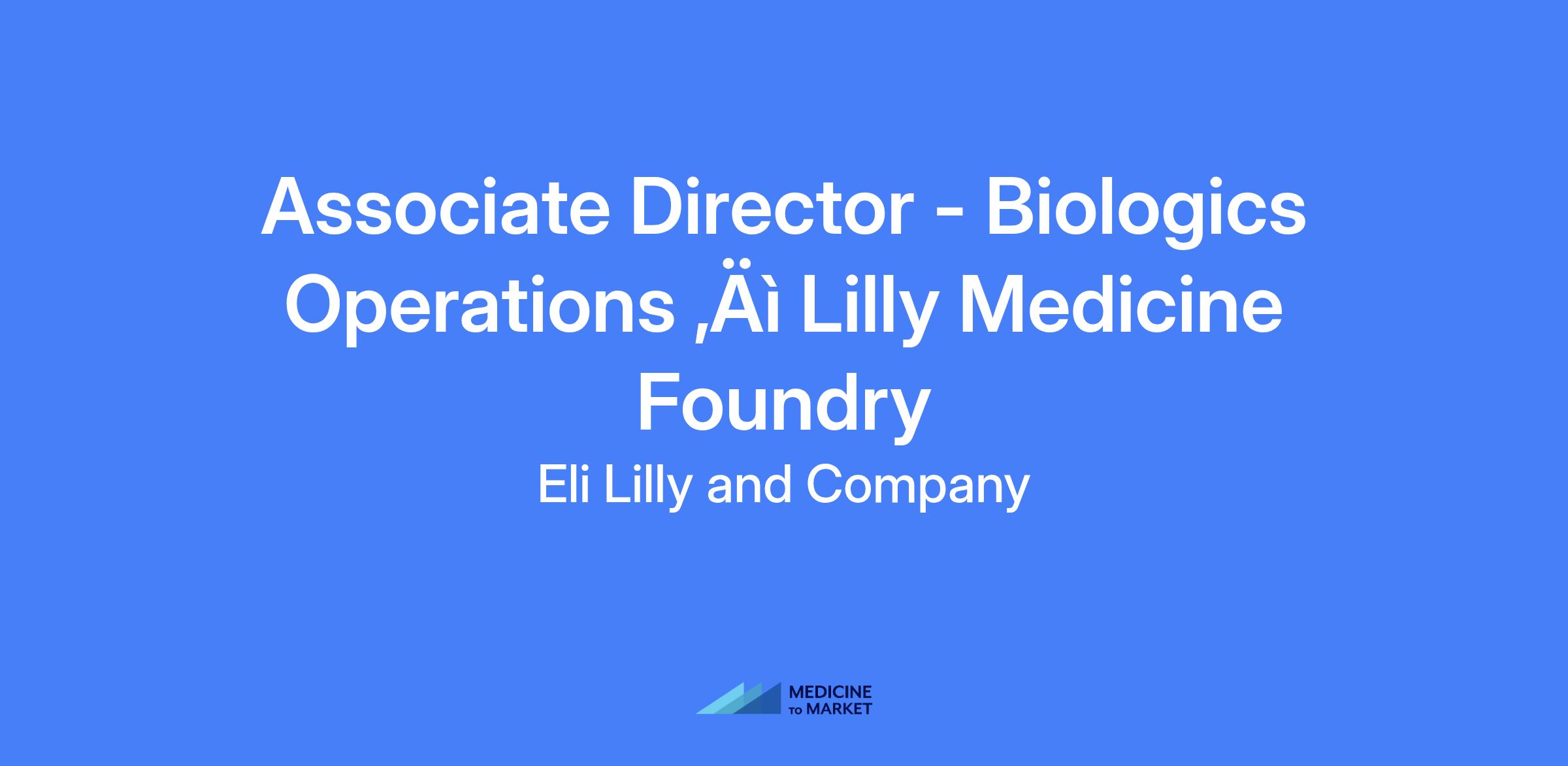 Associate Director – Biologics Operations – Lilly Medicine Foundry. Directly responsible for managing day-to-day manufacturing operations in the Biologics building, overseeing operational resources for the execution team, and leading frontline leaders to safely and compliantly manufacture high-quality medicine. Acts as the key integrator of the cross-functional team to drive safety, quality, and continuous improvement in pursuit of Operational Excellence. Supports project delivery and startup phases with systems, processes, and staffing to enable GMP operations.