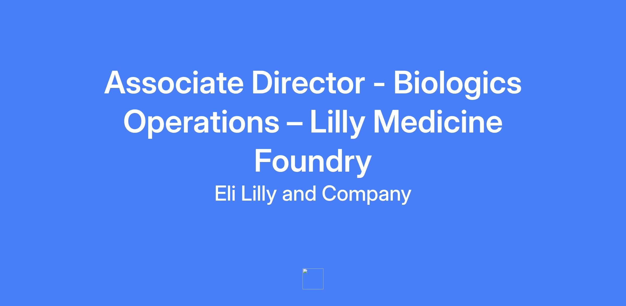 Associate Director โ Biologics Operations at Lilly Medicine Foundry. Responsible for day-to-day Biologics manufacturing operations, leading frontline teams, and integrating cross-functional resources to drive safety, quality, and continuous improvement in pursuit of Operational Excellence. In startup phase, leadership will be collaborative and supportive to build the organization, processes, and culture for GMP operations.