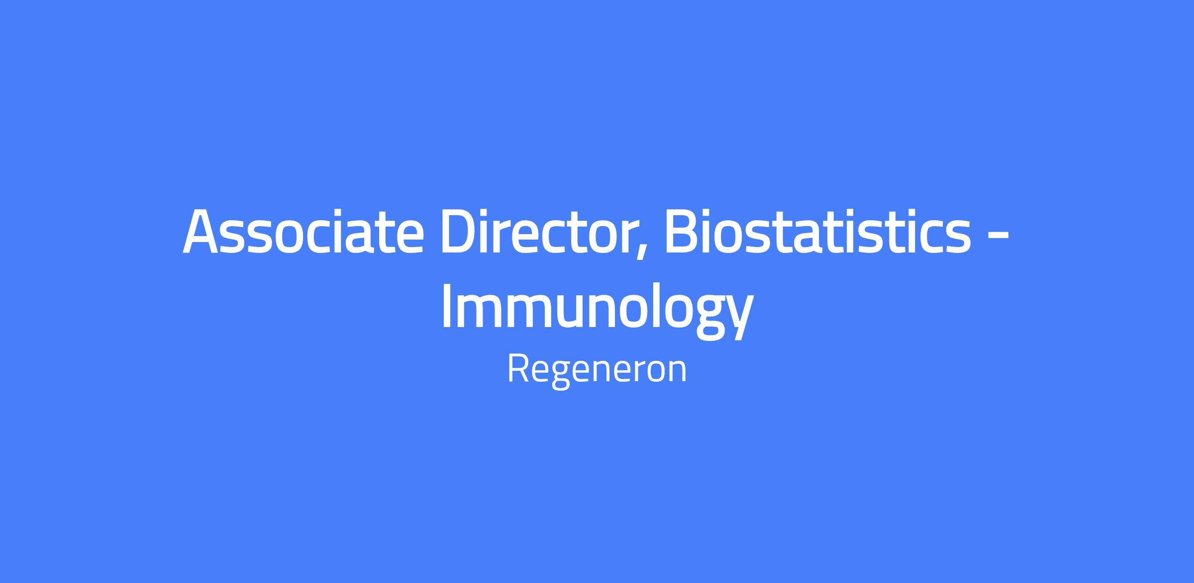 Associate Director, Biostatistics - Immunology. This role leads the Biostatistics department in Global Development, partnering with cross-functional teams to articulate drug development questions, assess endpoint feasibility, frame statistical approaches, design clinical experiments, and analyze results to inform decisions. The incumbent represents statistical issues in regulatory meetings, develops training and infrastructure, and mentors statisticians, with the potential to manage staff.