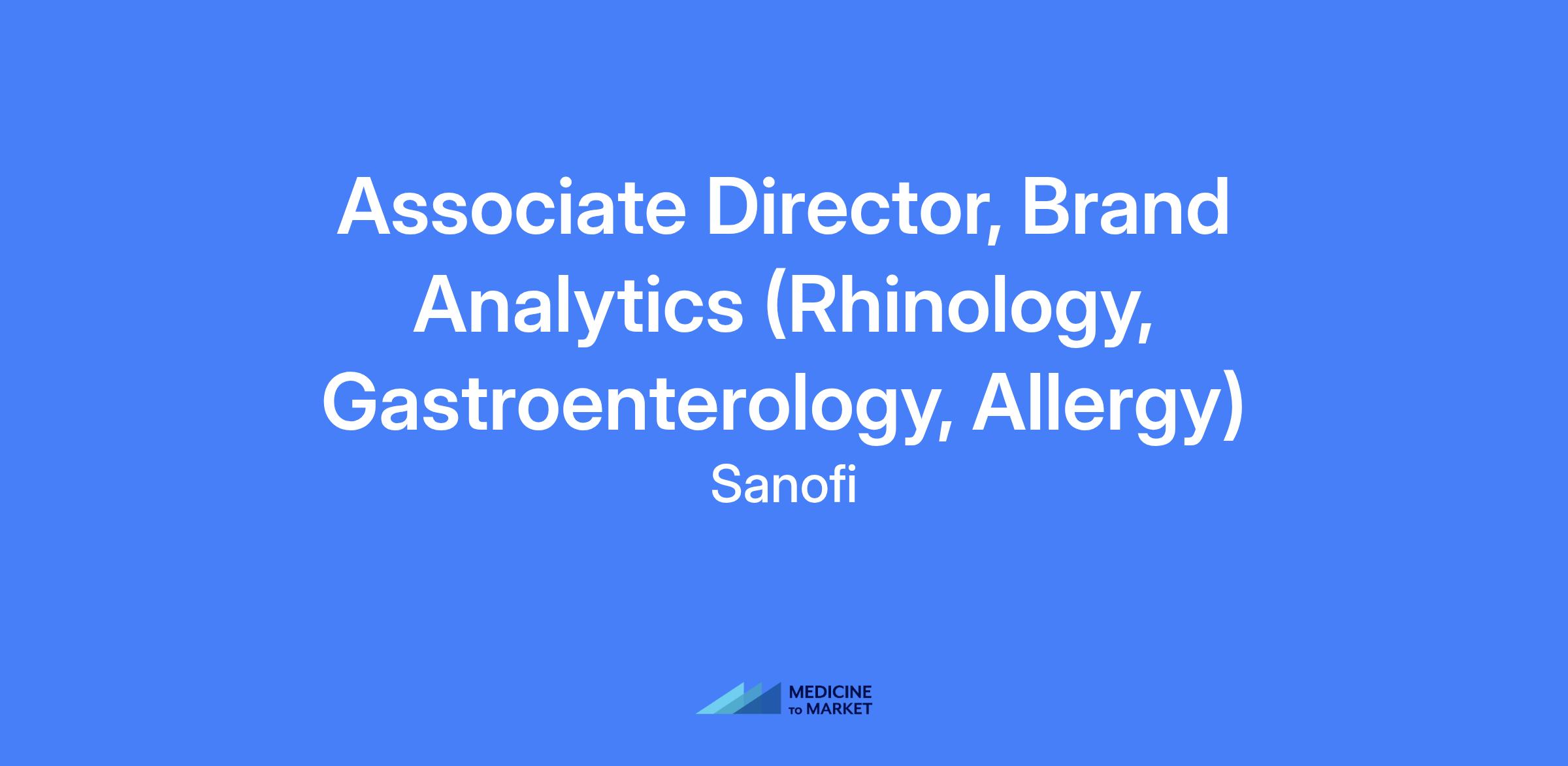 Associate Director, Brand Analytics - Rhinology, Gastroenterology, Allergy. Based in Cambridge, MA. Reports to the Director, Brand Analytics and serves as a key partner to Sanofi brand teams within the Insights and Analytics group, focusing on portfolio performance analysis and preparation for launches.