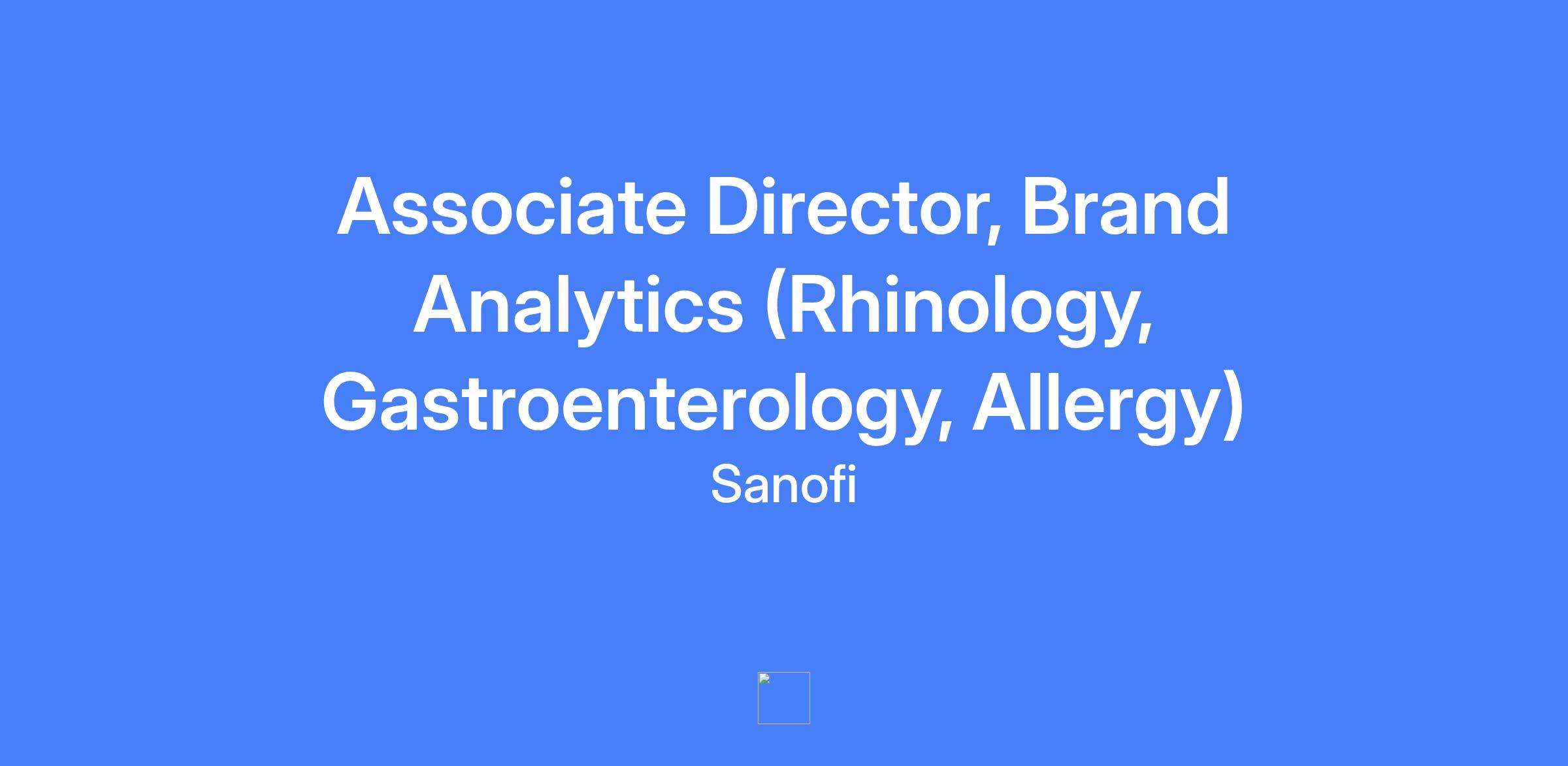 Associate Director, Brand Analytics - Rhinology, Gastroenterology, Allergy. Based in Cambridge, MA. Reports to the Director, Brand Analytics and serves as a key partner to Sanofi brand teams within the Insights and Analytics group, focusing on portfolio performance analysis and preparation for launches.