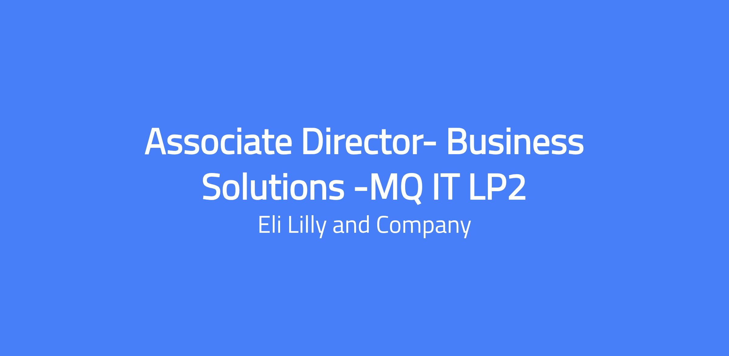 Associate Director- Business Solutions -MQ IT LP2 is the IT leader for the LP2 site, reporting to the MQ IT VP and the LP2 Site Head. Leads the IT function for the site, drives operational readiness, and develops the site IT strategic and business plan. Partners cross-functionally to implement the IT roadmap and ensures a safe, compliant, and high-performing IT organization at the Lebanon, Indiana site.