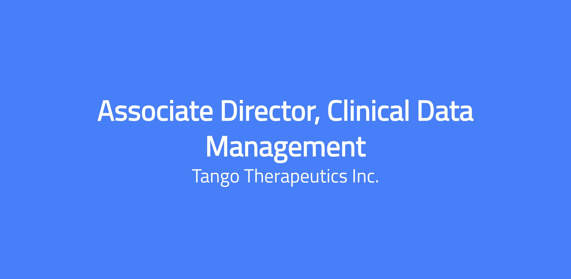 Reporting to the Vice President, Biometrics, the Associate Director of Clinical Data Management will be responsible for leading the clinical data management processes across Tango’s clinical trials. This will include clinical trial planning through data generation and database lock. This position will initiate best practices and lead clinical data management process flow as well as support the oversight of data management vendors, data transfers and data handling. This role is ideal for someone who thrives in a dynamic environment, excels at collaboration, and is passionate about ensuring high-quality clinical data to drive impactful decision-making.