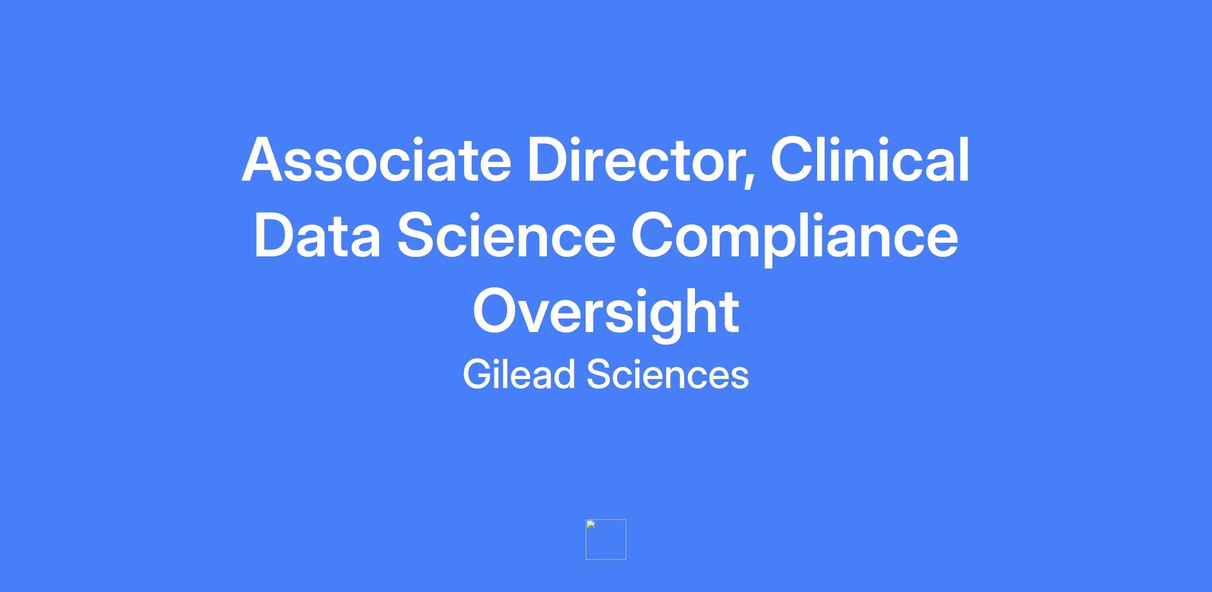 Associate Director, Clinical Data Science Compliance Oversight at Gilead. Lead in developing and implementing quality strategy to support CDS objectives, ensure regulatory compliance, and drive continuous improvement within the CDS organization.