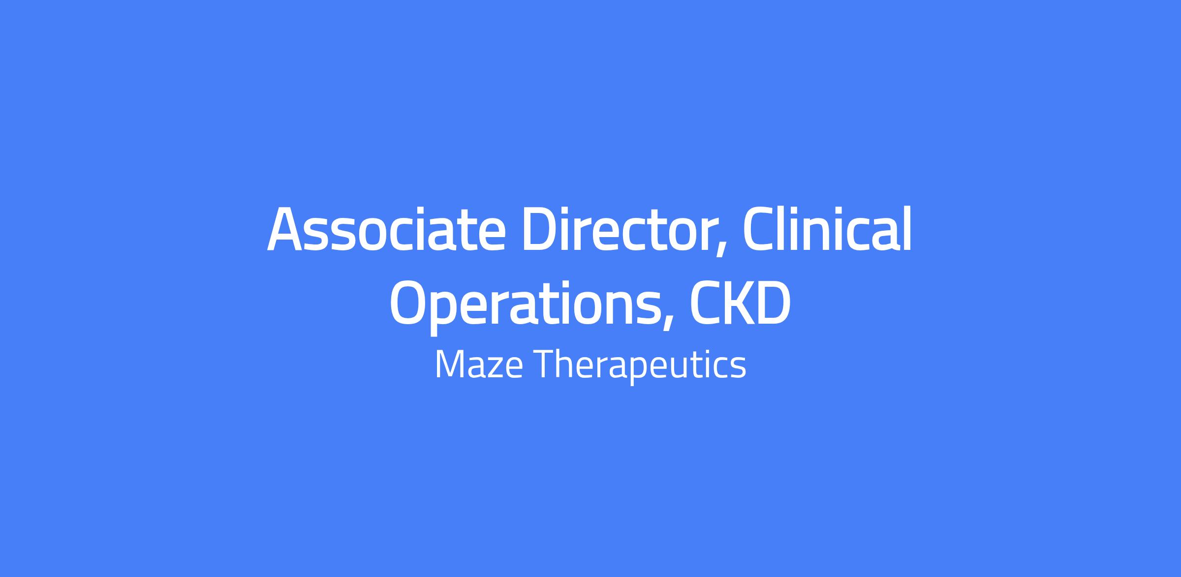 As Associate Director of Clinical Operations, CKD, you will be at the heart of Maze’s APOL1 CKD clinical development strategy, partnering with cross-functional teams to drive lead clinical trial execution. You’ll work with the Clinical Development Sub-Team, providing strategic and hands-on leadership to ensure the CKD Phase 2 study succeeds. This role offers ownership of the clinical study, engagement with key opinion leaders, and meaningful contributions to Clinical Operations. If you thrive in a collaborative, hands-on environment and are motivated by advancing innovative medicines to patients, this role may be a fit.