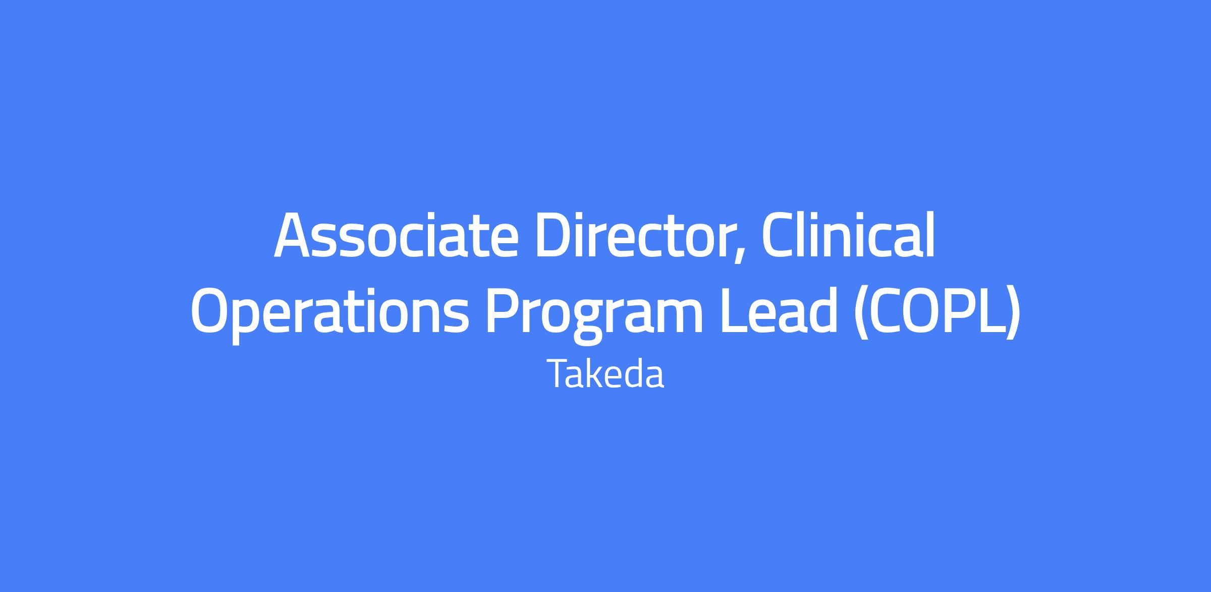 Associate Director, Clinical Operations Program Lead (COPL) responsible for developing and leading the program-level operational strategy and planning on assigned Clinical Programs in close collaboration with strategic partners and other vendors. Represent Clinical Operations at the Global Program Team (GPT) and partner with the Global Clinical Lead to lead the Clinical Sub Team (CST) accountable for the development and execution of the CDP. Provide program-level sponsor’s operational oversight of strategic partners and other vendors to ensure the effective execution of the clinical studies on time, with high quality and within agreed budget. Location: Massachusetts - Virtual.