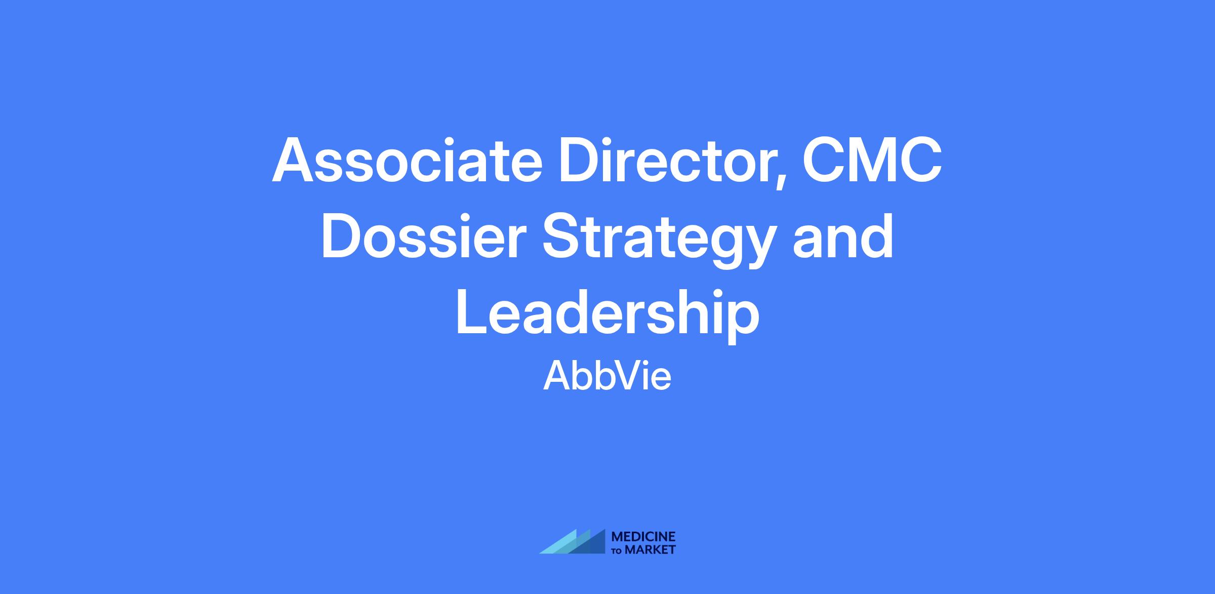 Associate Director, CMC Dossier Strategy and Leadership. Hybrid role requiring presence in a designated AbbVie US office (North Chicago, Irvine, South San Francisco, Worcester MA, Waltham MA) three days per week. Leads global regulatory dossier preparation activities for novel biologics by coordinating cross-functional teams to ensure high-quality CMC submission documents aligned with global regulatory requirements and development strategy.
