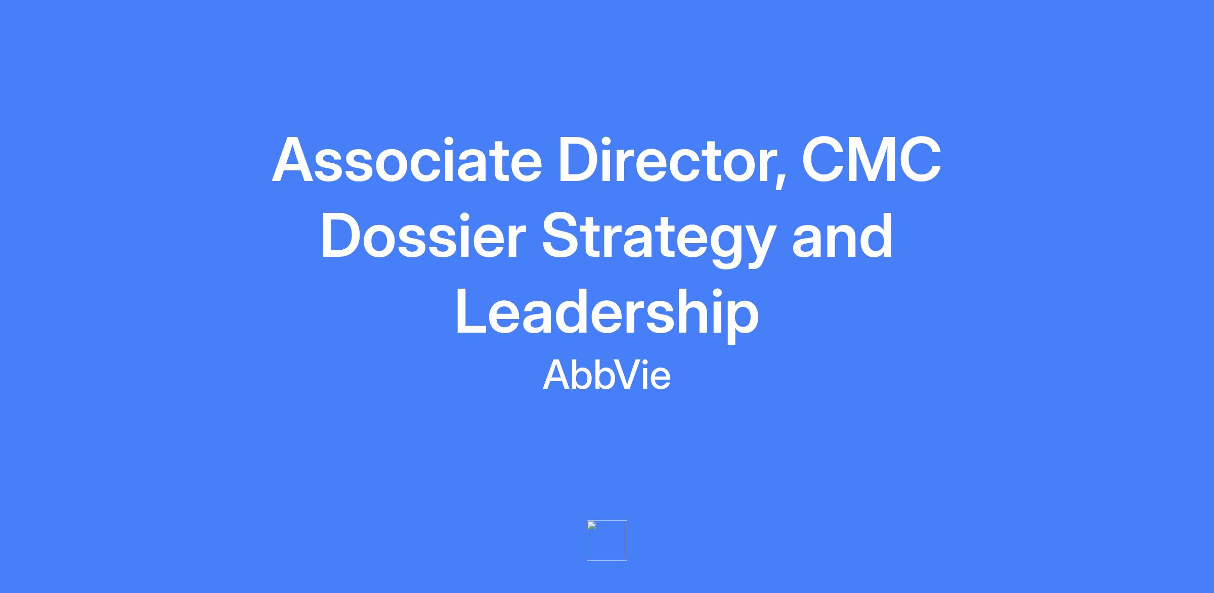Associate Director, CMC Dossier Strategy and Leadership. Hybrid role requiring presence in a designated AbbVie US office (North Chicago, Irvine, South San Francisco, Worcester MA, Waltham MA) three days per week. Leads global regulatory dossier preparation activities for novel biologics by coordinating cross-functional teams to ensure high-quality CMC submission documents aligned with global regulatory requirements and development strategy.