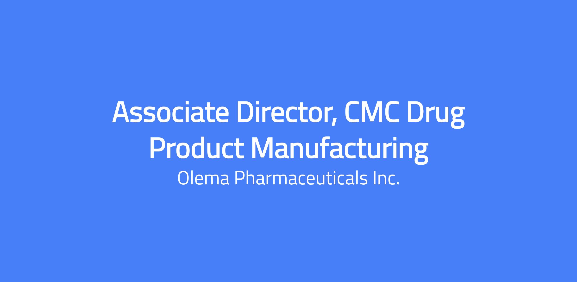 About the Role >>> Associate Director, CMC Drug Product Manufacturing