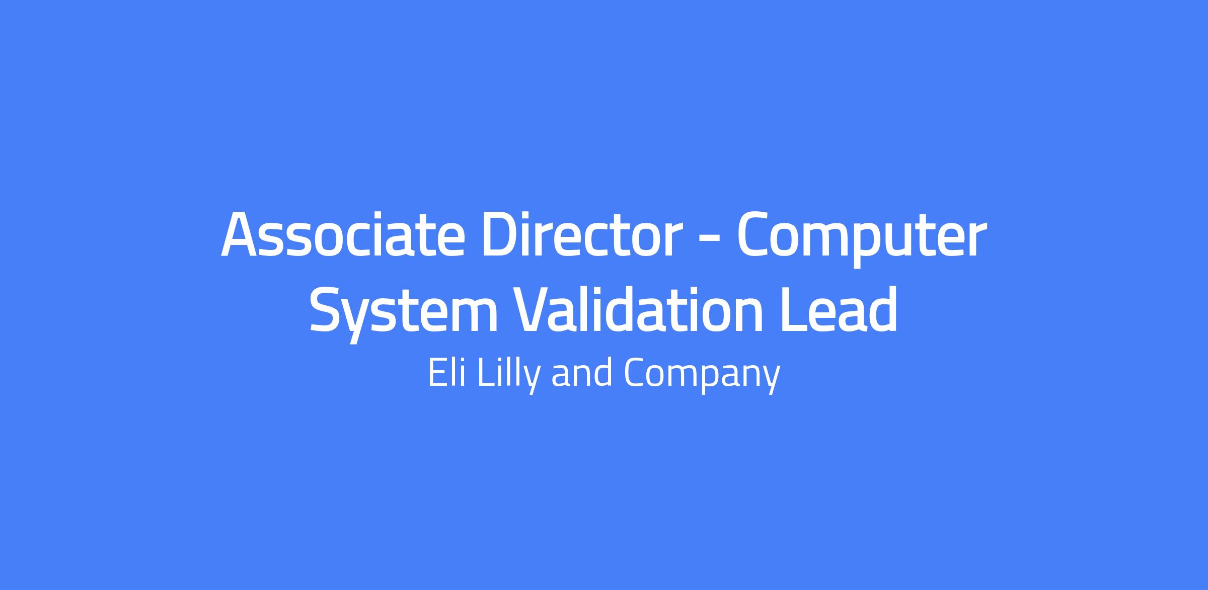 Associate Director - Computer System Validation Lead will provide technical leadership across site and global IT groups focusing on Computer System Validation strategies, regulatory compliance, and global policies and procedures for validating, maintaining, and retiring computer systems.