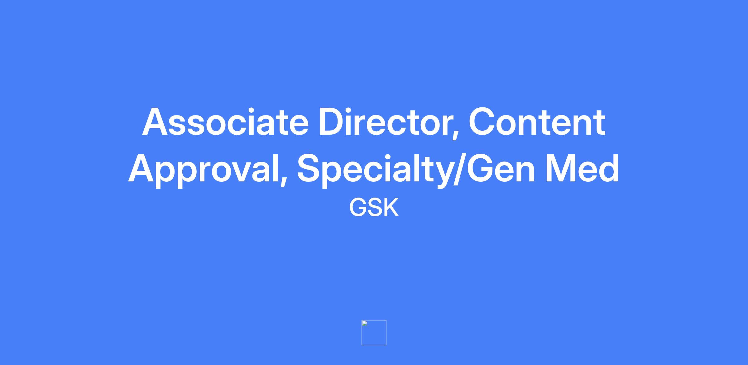 Associate Director, Content Approval for Specialty/Gen Med, responsible for ensuring global promotional and non-promotional content meets high standards of quality, scientific accuracy, balance, and compliance, with respect to internal standards and external regulations including ABPI Code.