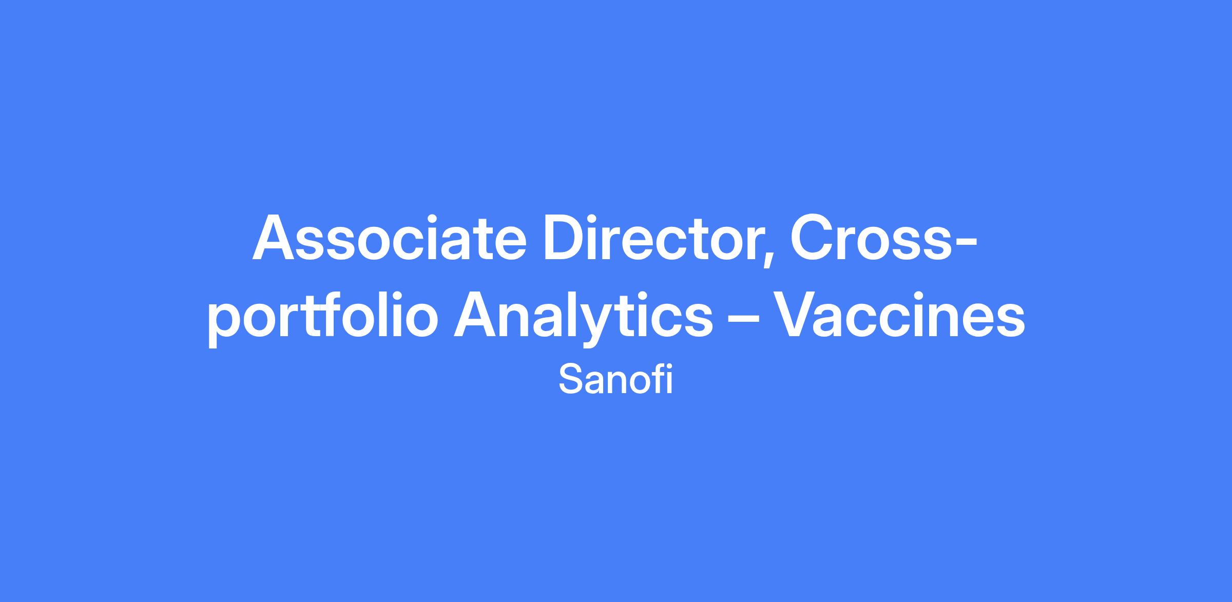Associate Director, Cross-portfolio Analytics – Vaccines, based in Morristown, NJ. Responsible for reporting and presenting Sanofi's portfolio performance and integrated insights to leadership as a member of the Insights and Analytics team, focusing on analyzing launched assets and preparing for future launches, and proactively identifying opportunities using claims, SP, and CRM data.