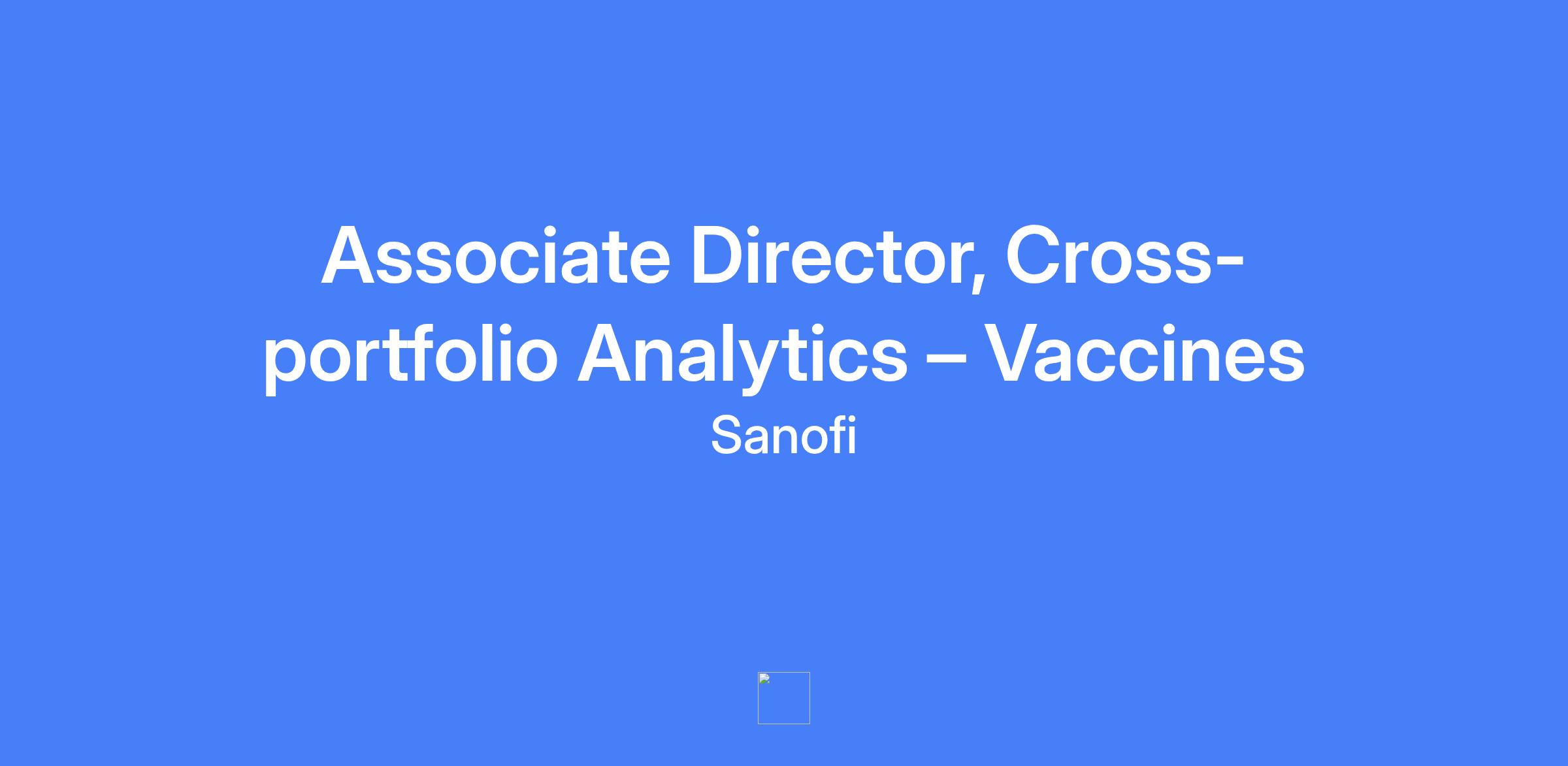 Associate Director, Cross-portfolio Analytics β Vaccines. Based in Morristown, NJ. Reports to the Director Customer and GTM Strategy Analytics Vaccines. Responsible for reporting and presenting Sanofi's portfolio performance and integrated insights to leadership as part of the Insights and Analytics team, focusing on launched assets and preparation for future launches.