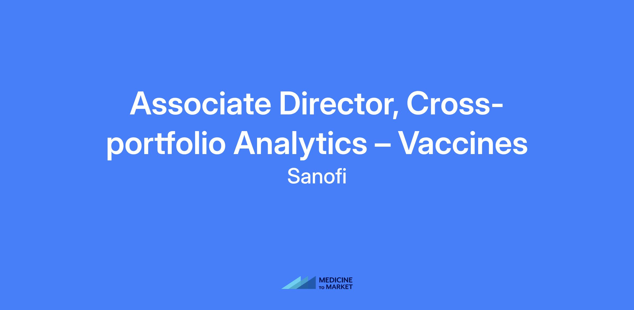 Associate Director, Cross-portfolio Analytics β Vaccines. Based in Morristown, NJ. Reports to the Director Customer and GTM Strategy Analytics Vaccines. Responsible for reporting and presenting Sanofi's portfolio performance and integrated insights to leadership as part of the Insights and Analytics team, focusing on launched assets and preparation for future launches.