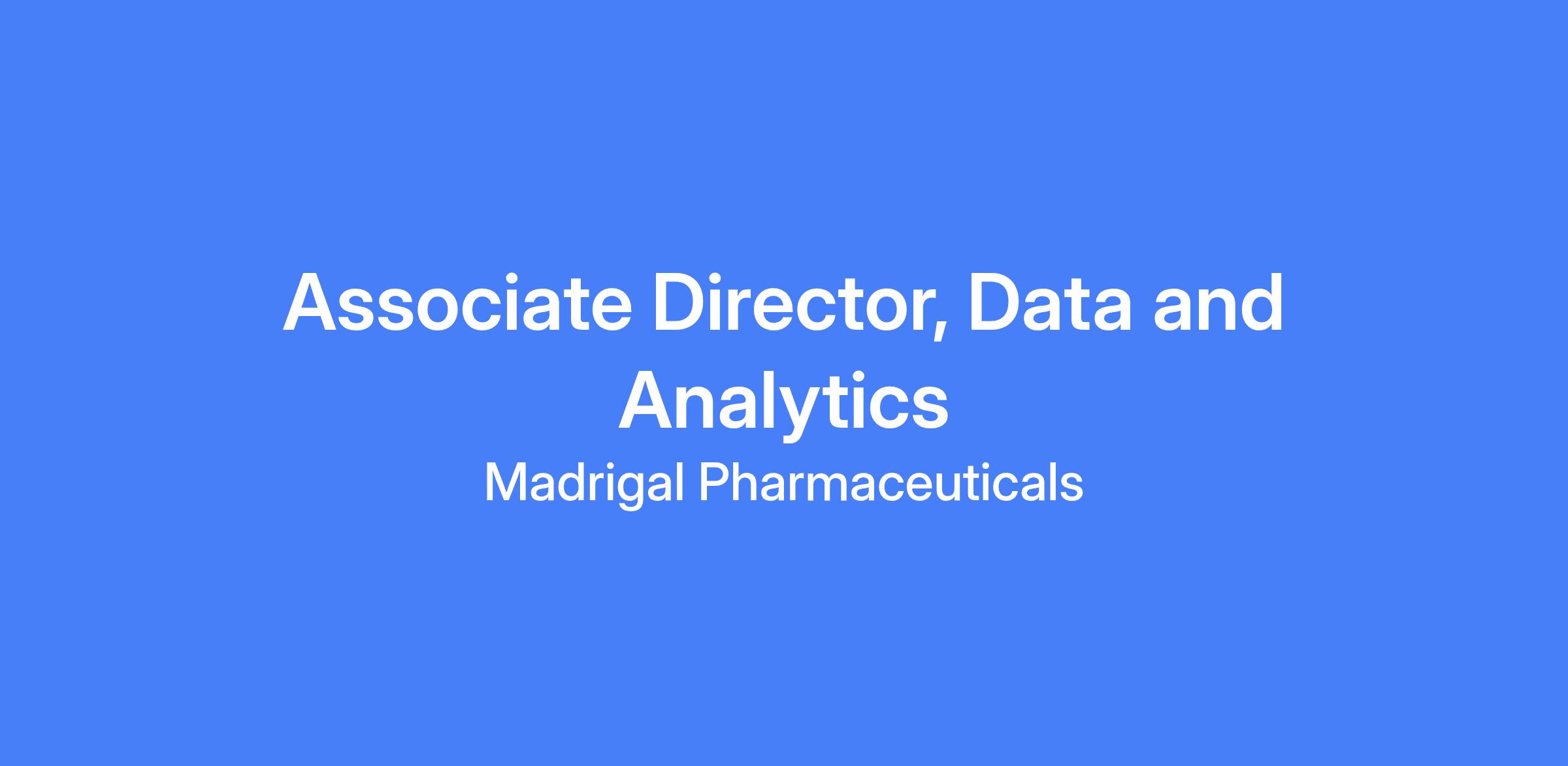 - Execute Madrigal’s established enterprise data strategy, ensuring alignment with corporate, supply chain, and finance priorities and accelerating analytics delivery.