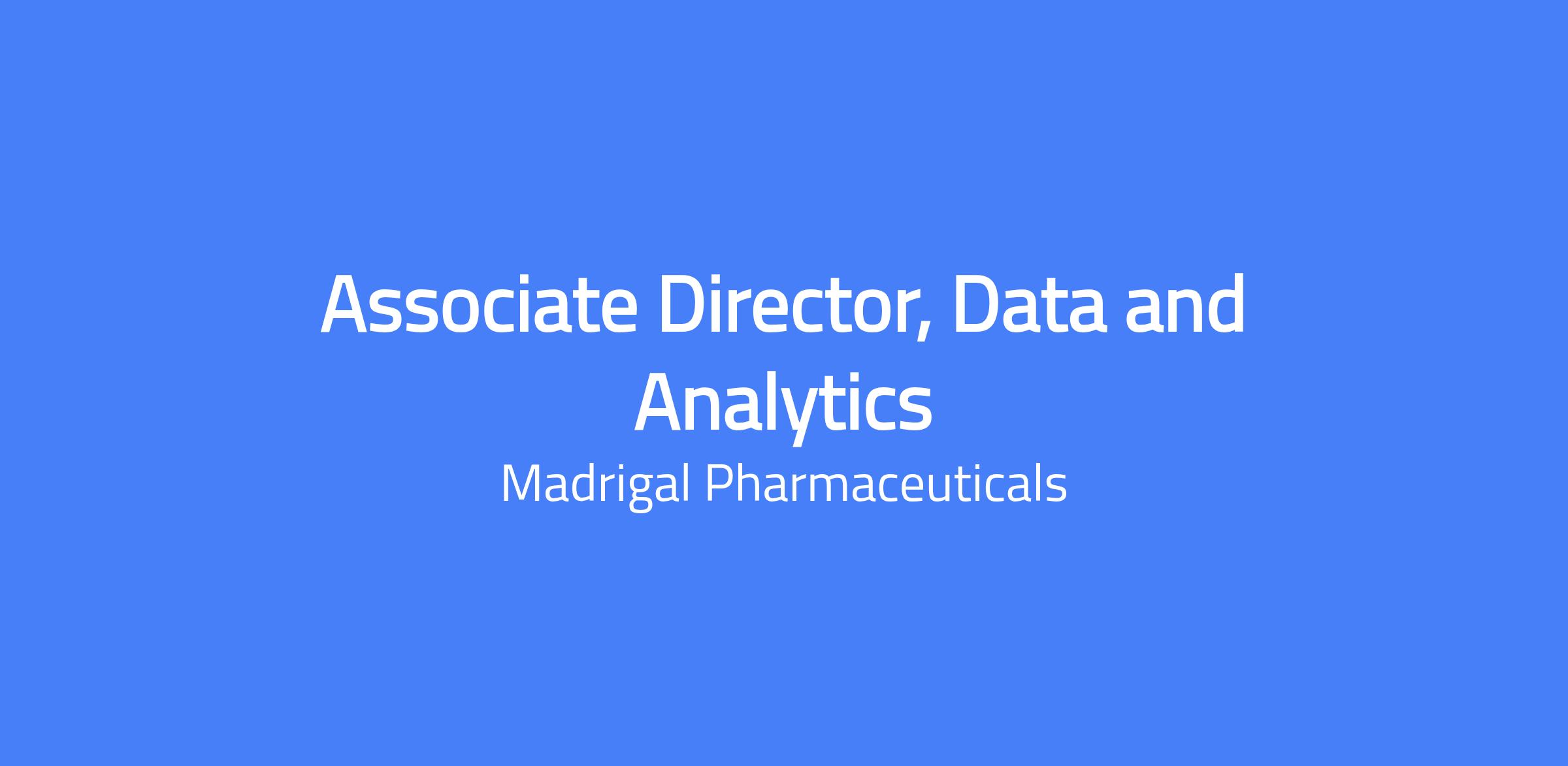 - Execute Madrigal’s established enterprise data strategy, ensuring alignment with corporate, supply chain, and finance priorities and accelerating analytics delivery.