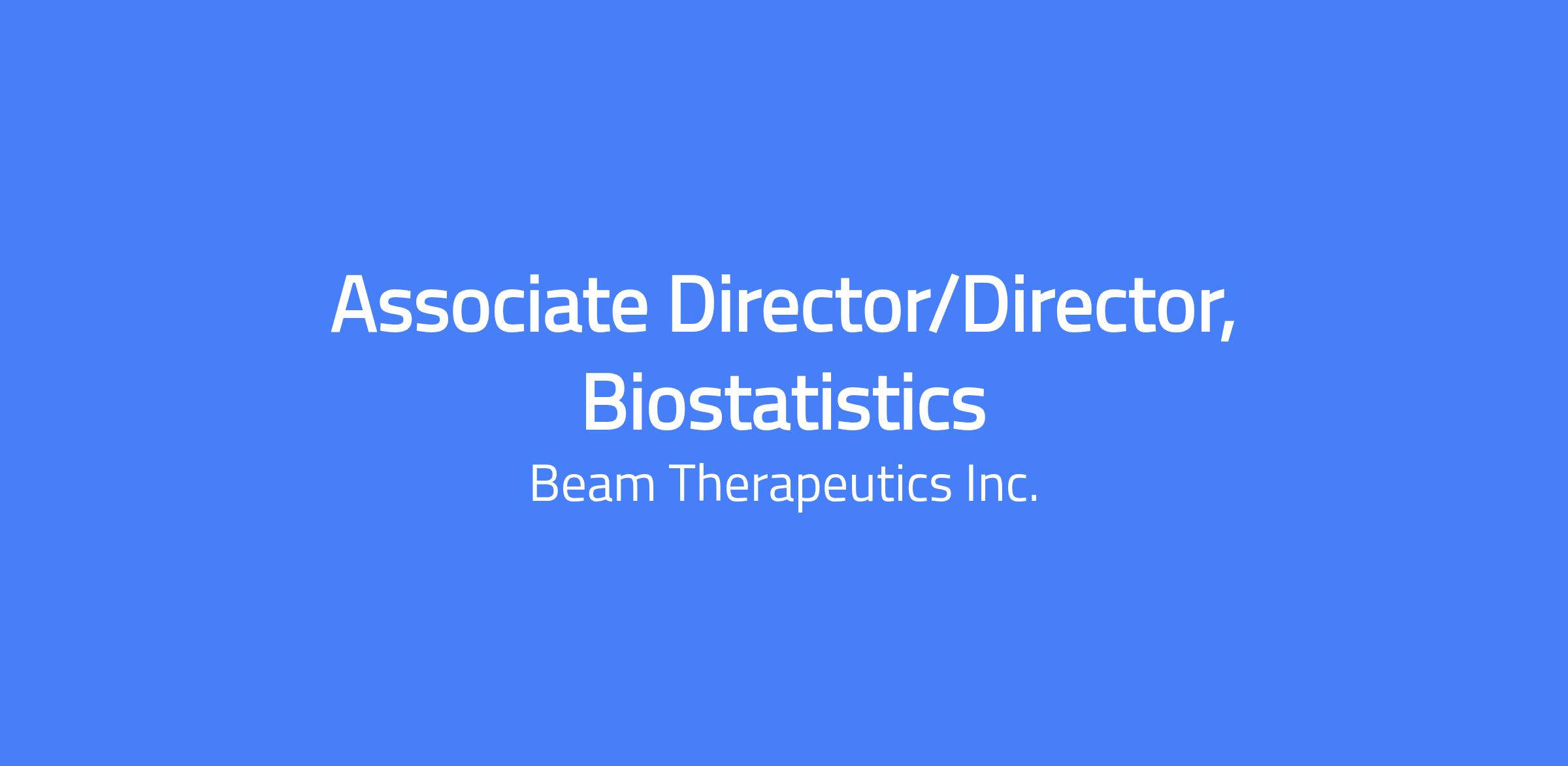 Beam is seeking an Associate Director/Director of Biostatistics to provide the statistical strategic plan, design, execution, and reporting of clinical trials across Beamโs development programs.ย The ideal candidate will work closely with the Head of Biometrics and play a key role in the statistical strategy for clinical development programs and provide oversight to CROs to ensure timely execution of the clinical trials.