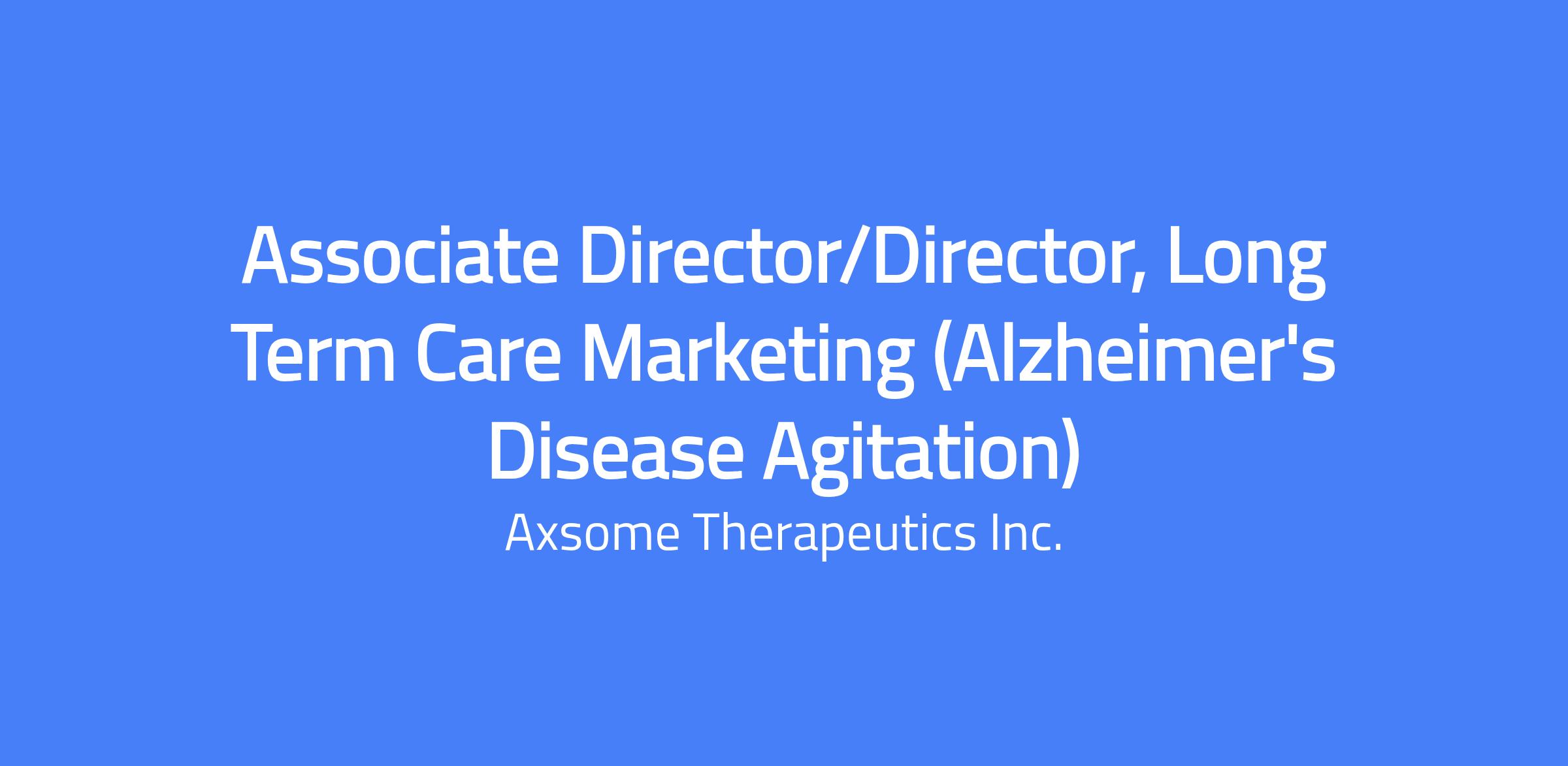 Axsome Therapeutics is seeking an Associate Director/Director, Long Term Care Marketing. This role is responsible for developing and executing strategy and tactics for the launch of Alzheimer’s Disease Agitation in key channels such as LTC. The Marketer will develop and execute both personal and non-personal promotion tactical plans in line with brand strategies. This role will collaborate cross functionally with Market Access, Regional Marketing, Patient Marketing, Patient Support Services, Sales, Market Access, Data & Market Analytics, as well as other internal and external partners. Deliverables to include POA development, brand communications, cohesive messaging and content tailored for specific audiences, etc. This individual reports to the Executive Director, Marketing, Alzheimer’s Disease.