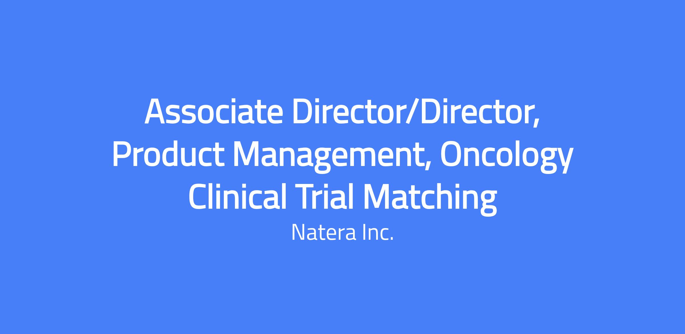 Position Summary: The Associate Director / Director of Product Management, Oncology Clinical Trial Matching, leads the development and commercialization of Signatera clinical trial matching product for current and future versions of the Signatera product line, including on-market and new tissue-informed MRD products. This role supports the long-term vision and 5-year strategic planning for the product roadmap, with a focus on growing and accelerating the Signatera trials enrollment. The position requires strategic thinking combined with strong execution and leadership in cross-functional teams. Responsibilities include managing the product lifecycle from concept to obsolescence, developing the strategic roadmap, prioritizing features and programs, creating product requirements, and improving overall product performance.