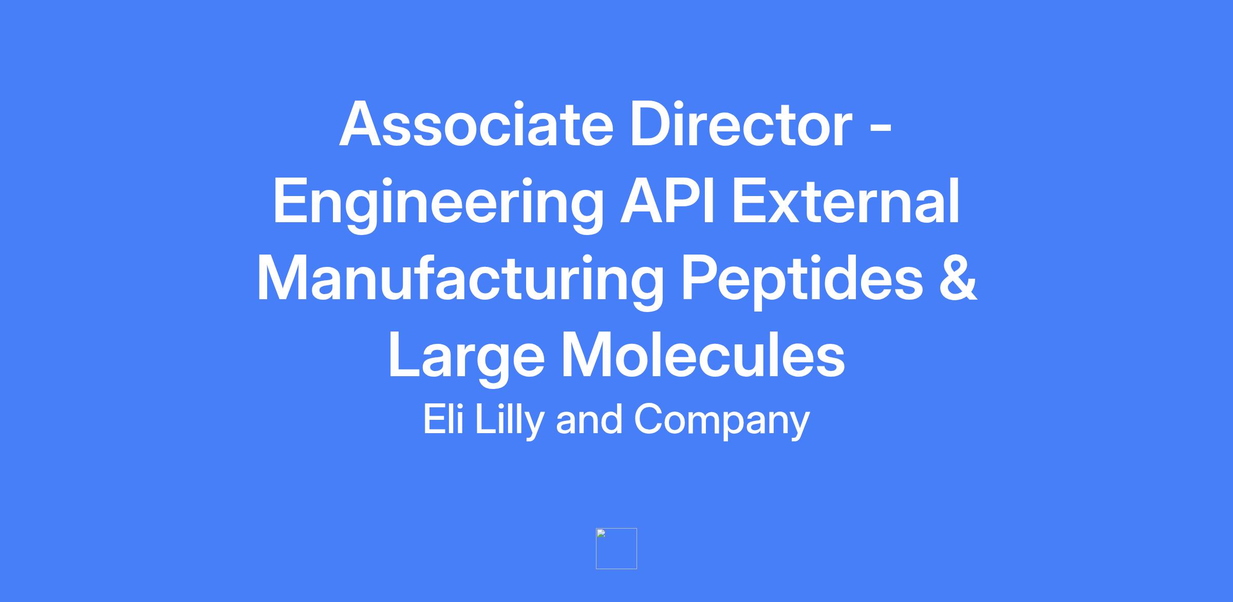 Associate Director - API EM Engineering Leader for Peptides and Large Molecule, providing leadership and expertise to reliably supply and commercialize externally manufactured APIs, intermediates and starting materials with safety first and quality always. Role involves increasing technical complexity and commercialization activity as the pipeline progresses.