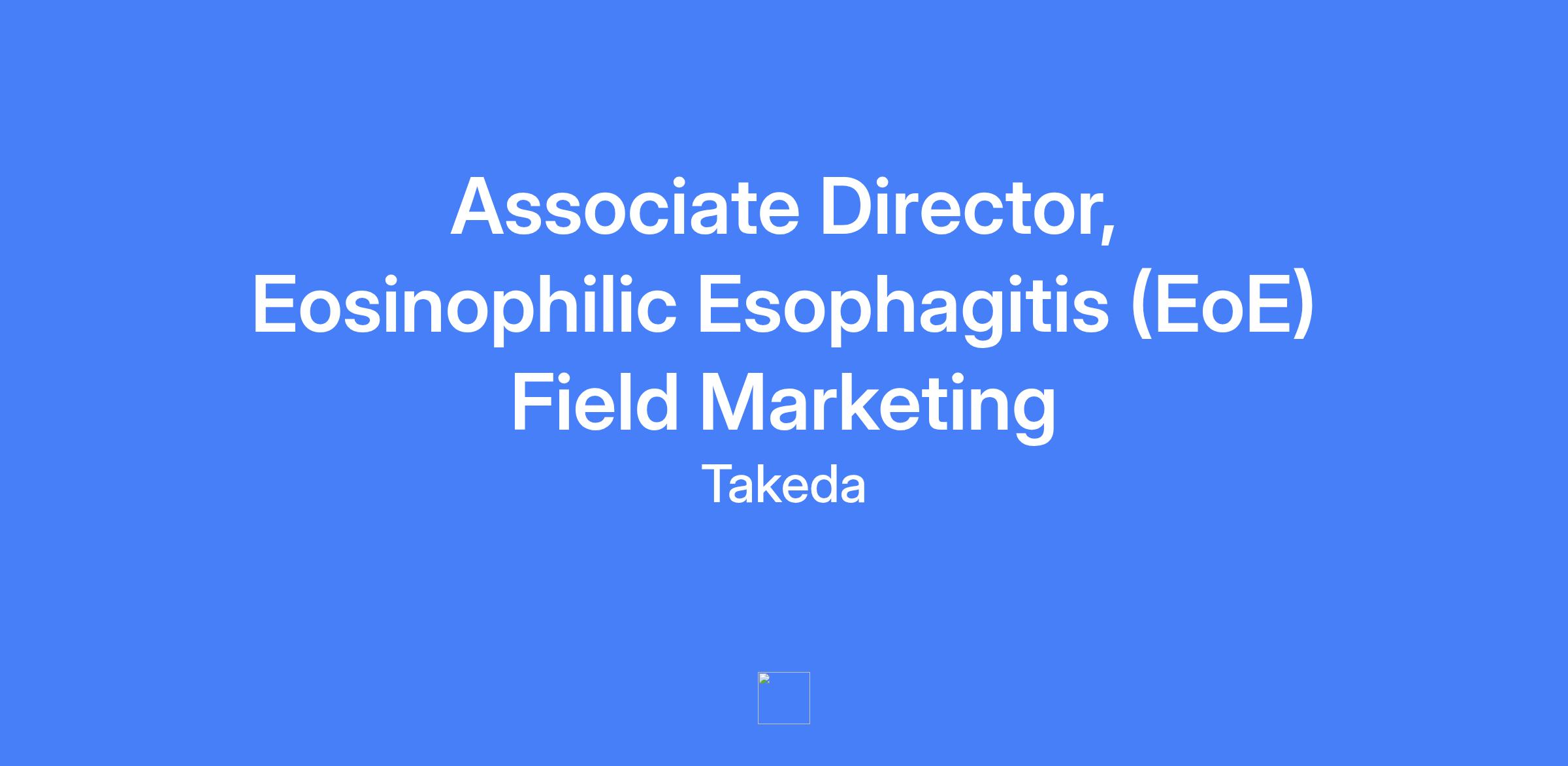 Associate Director, Eosinophilic Esophagitis (EoE) Field Marketing. Lead HCP engagement strategy including peer-to-programming, congress presence, and advisory board creation and execution. Reports to the Director, Brand Strategy (GI Rare – EoE).