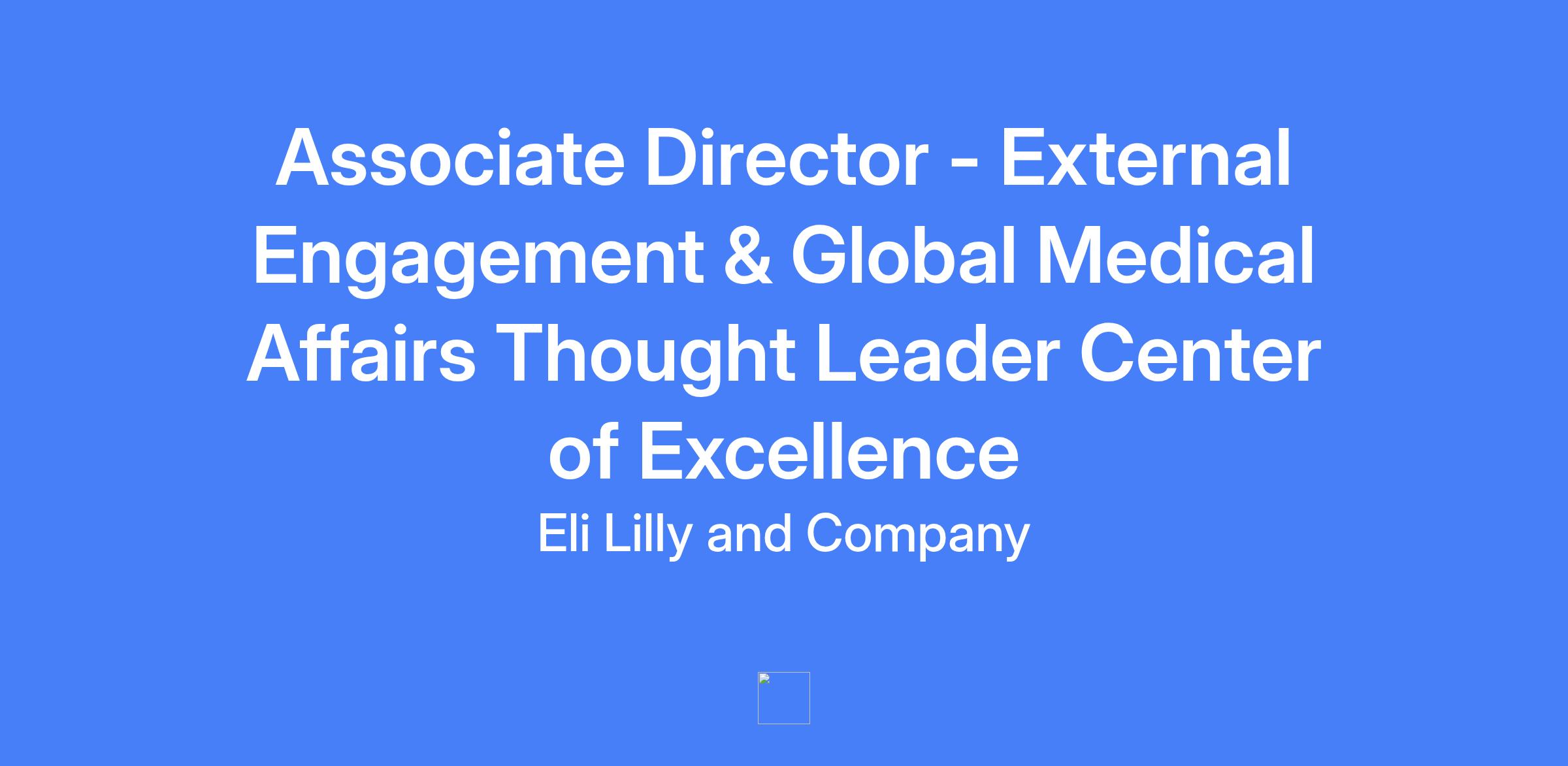 Associate Director - External Engagement & Global Medical Affairs Thought Leader Center of Excellence. Lead the Thought Leader (TL) / External Engagement (EE) capability across the enterprise, ensuring strategy, compliance, and effective execution of external engagements with TLs, HCPs, and other external experts to advance Lillyโs medical affairs objectives.