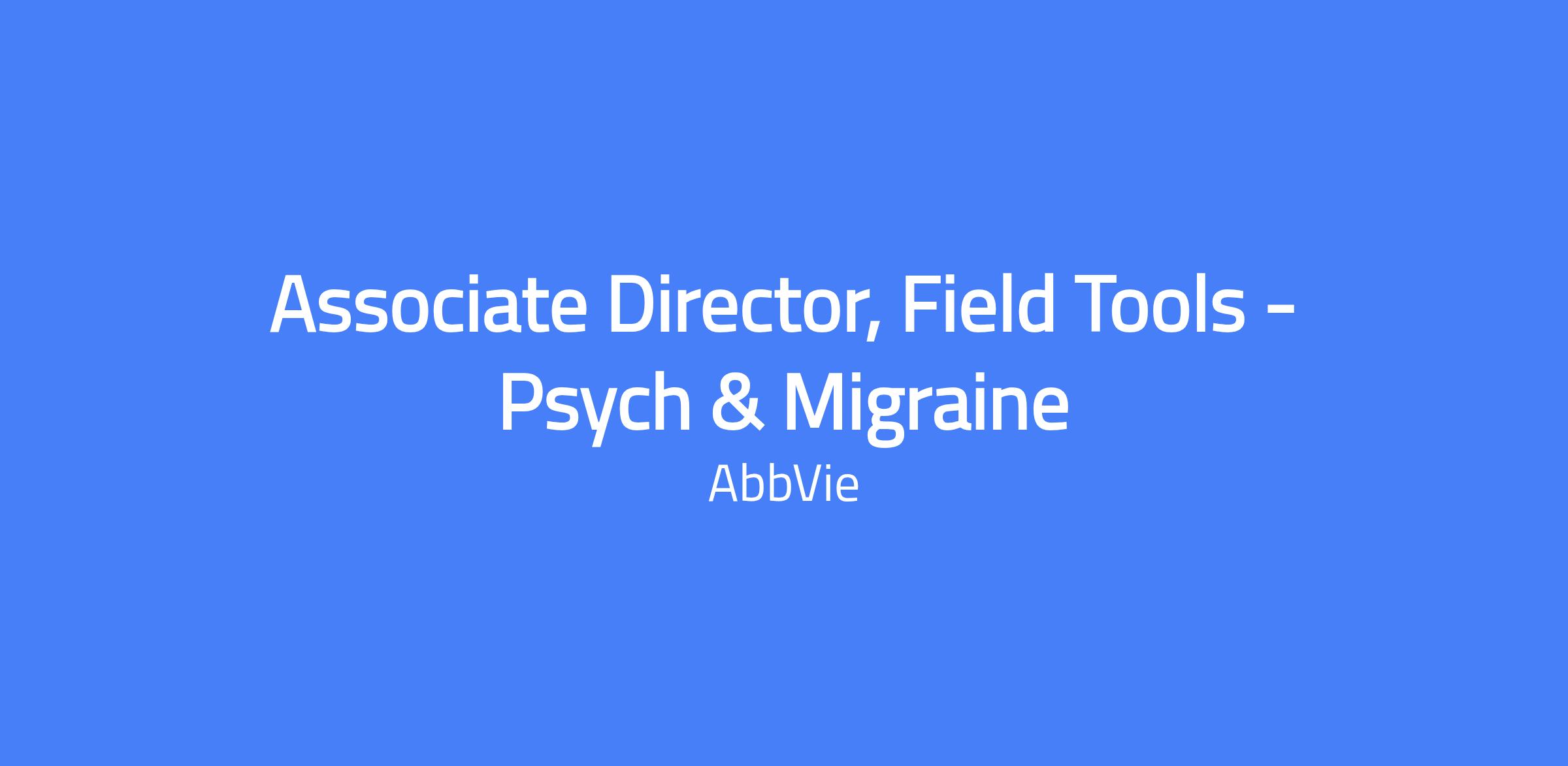 The Associate Director, Field Tools, Psych & Migraine (CNS) is responsible for all aspects of the suite of tools provided to the field, including planning, resourcing, strategy, implementation, socialization, and training. Oversees the design, deployment, training, communications, and management of the Field Tools.