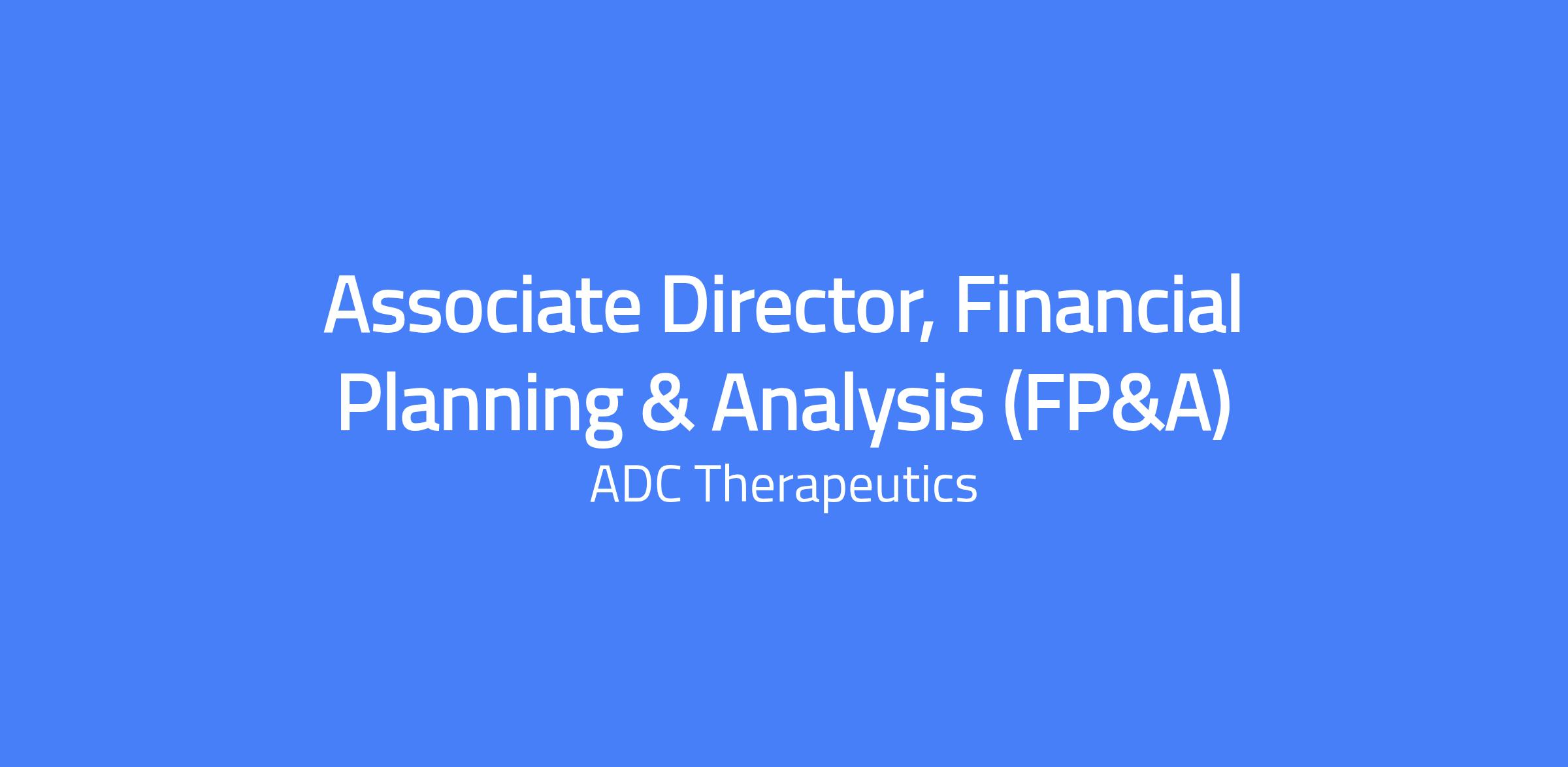 Associate Director, Financial Planning & Analysis (FP&A) at ADC Therapeutics. You will lead financial analysis, planning, and controls in collaboration with Technical Operations leadership, owning forecasting accuracy and cost estimation. This role reports to the VP, FP&A and is based in New Providence, NJ with flexibility for remote work; local candidates preferred.