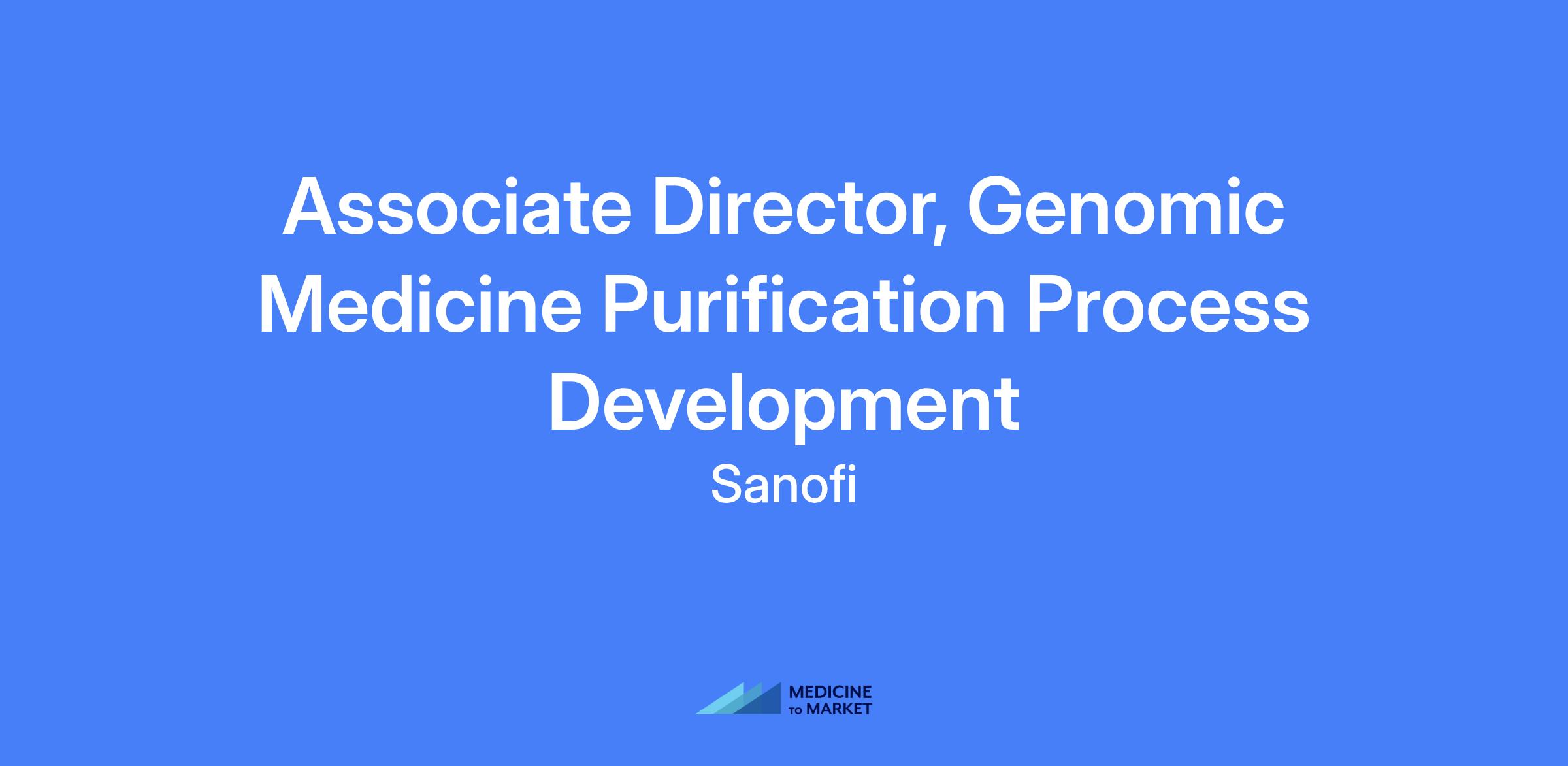 Associate Director, Genomic Medicine Purification Process Development. Location: Waltham, MA. Work Model: M-F onsite.