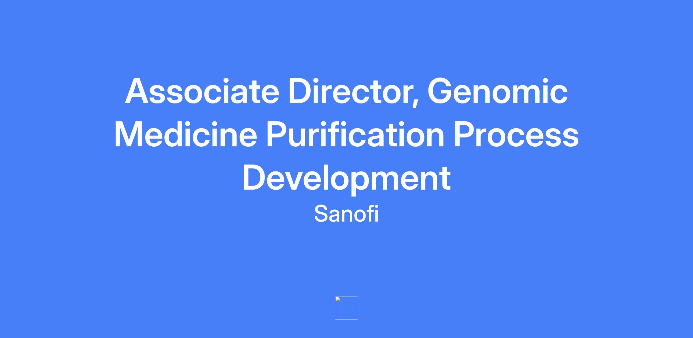 Associate Director, Genomic Medicine Purification Process Development. Location: Waltham, MA. Work Model: M-F onsite.